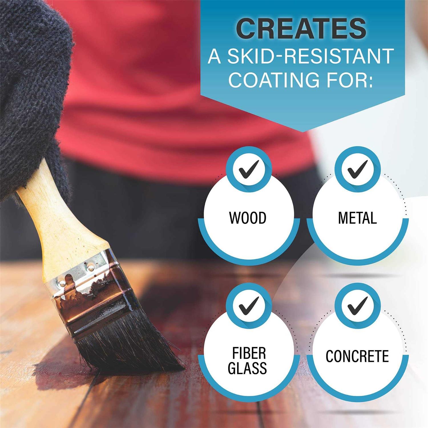- Creates a skid-resistant coating for wood, metal, fiberglass and concrete surfaces when mixed