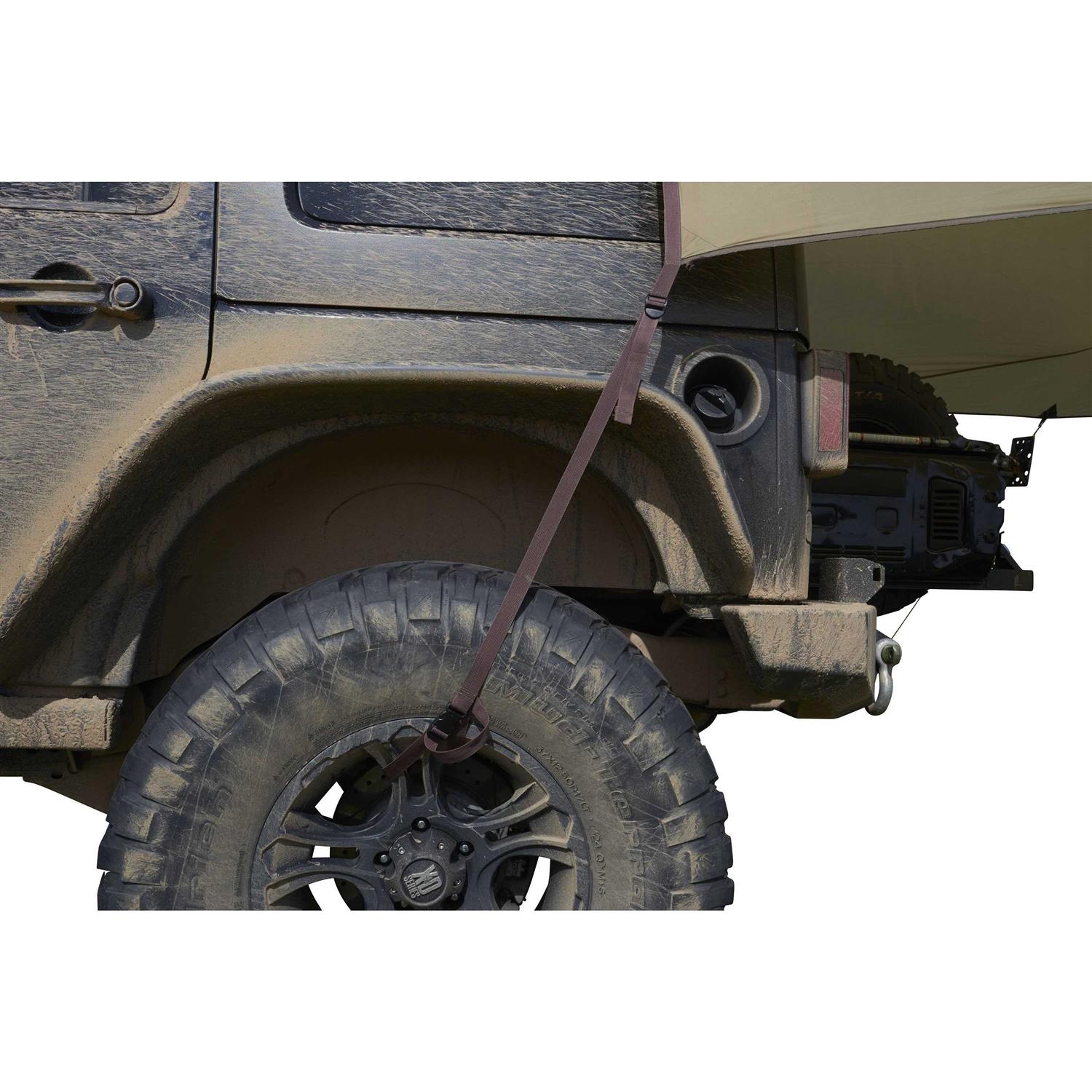 - Unique vehicle attachment system that utilizes 1” webbing and side release buckles