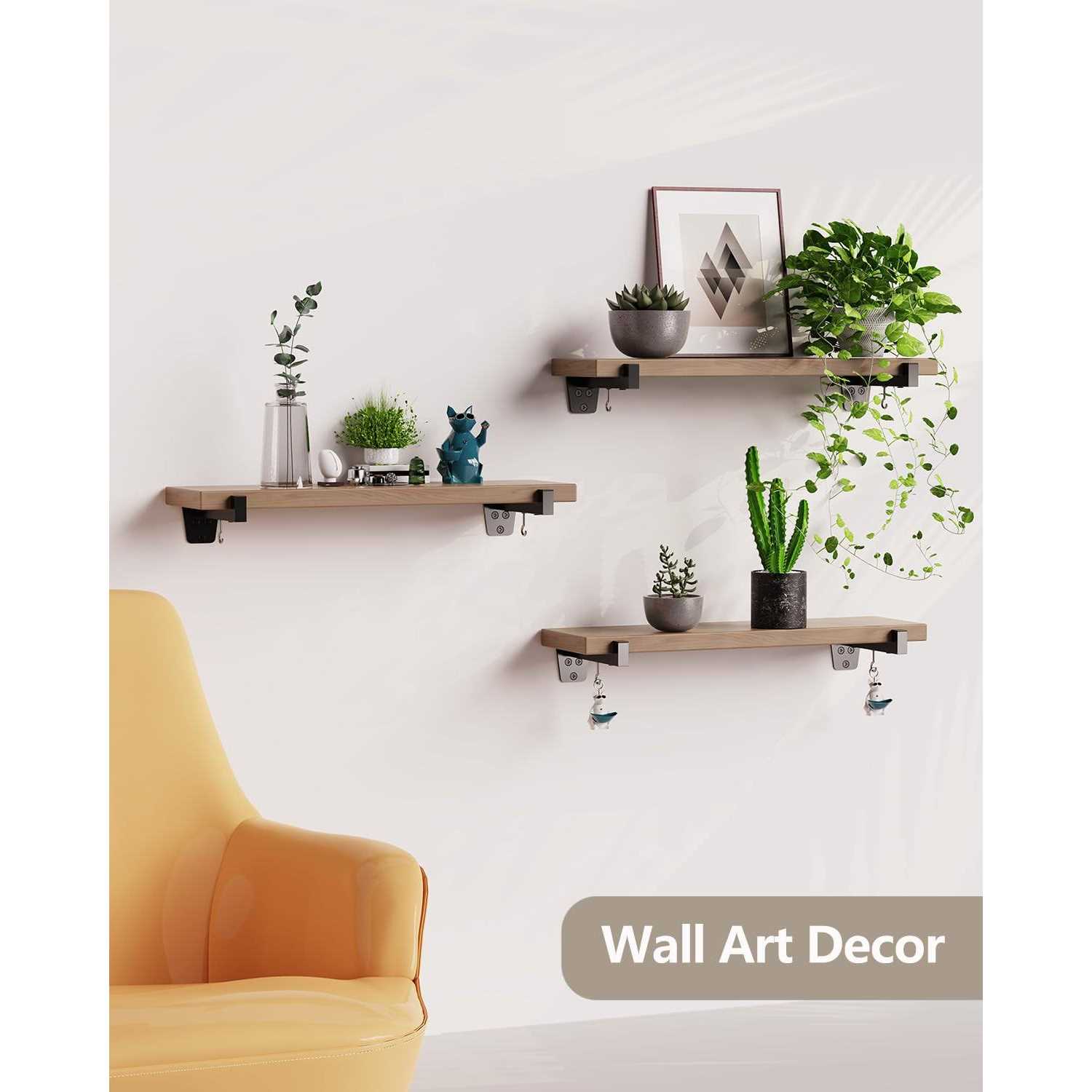 (Wood Board Is Not Included) 【4 More Detachable Hooks】Upgraded shelf brackets with 4 more detachable stainless steel hooks, designed to hang the odds and ends such as key, pendant, duster, brush, bath ball, hair accessory, etc. Maximize your available storage space. 【Heavy Duty Construction Bears 110 lbs】The solid metal shelf brackets are made of 1/5 inch thick high-quality steel square pipe, well-painted matte black, which is resistant to daily scratches and rust. Each pair of brackets are durable enough to carry 110 lbs when mounted on a concrete wall. 【Multi-purpose DIY Shelving】Our wall-mounted open shelves are perfect for home decor and storage. The rustic shelf brackets can be used as bookshelves, kitchen wall storage shelves, bathroom storage racks, garden display stands, office organized shelves, garage storage shelves, etc. 【Easy Installation】The shelf brackets come with mounting hardware for drywall, wood, or concrete.