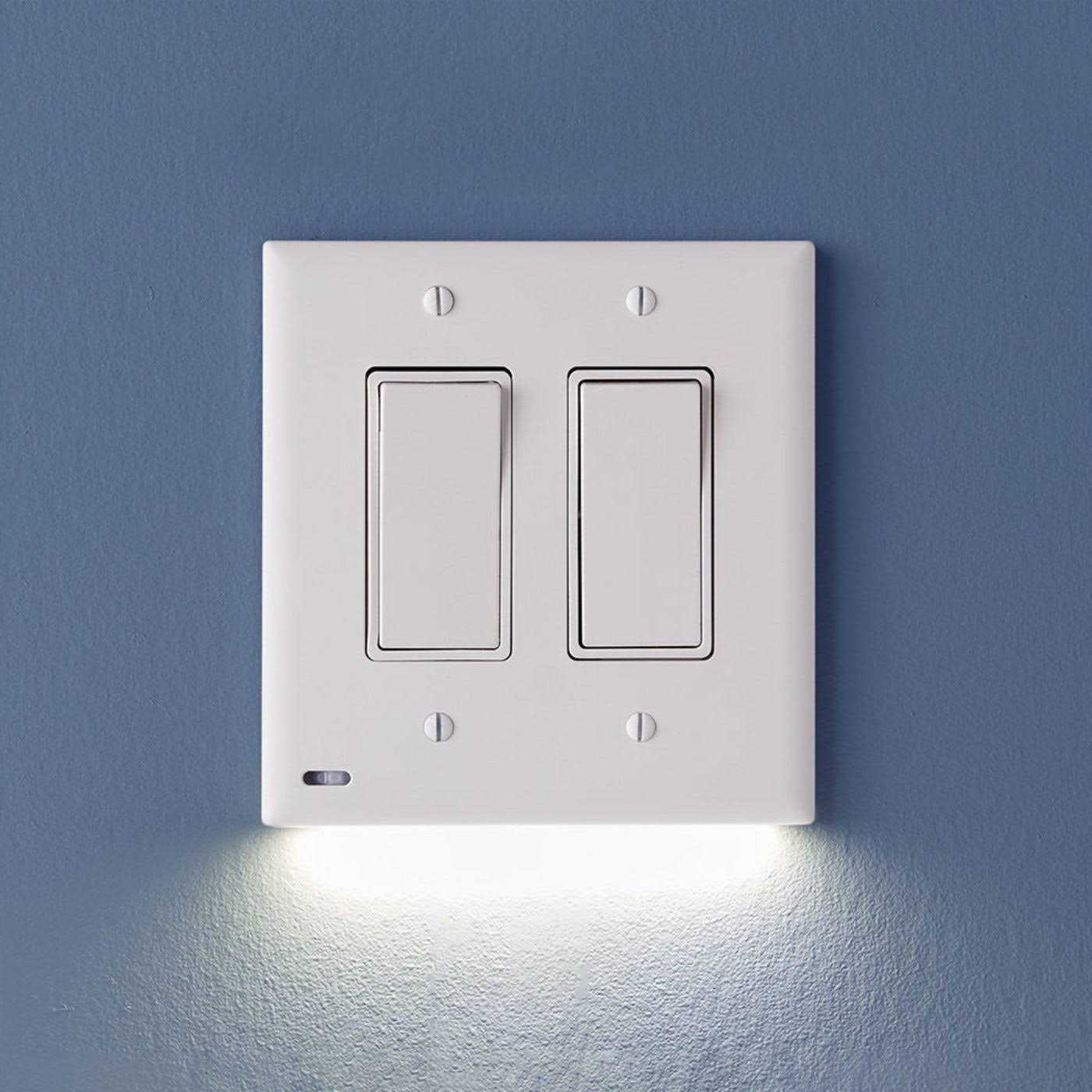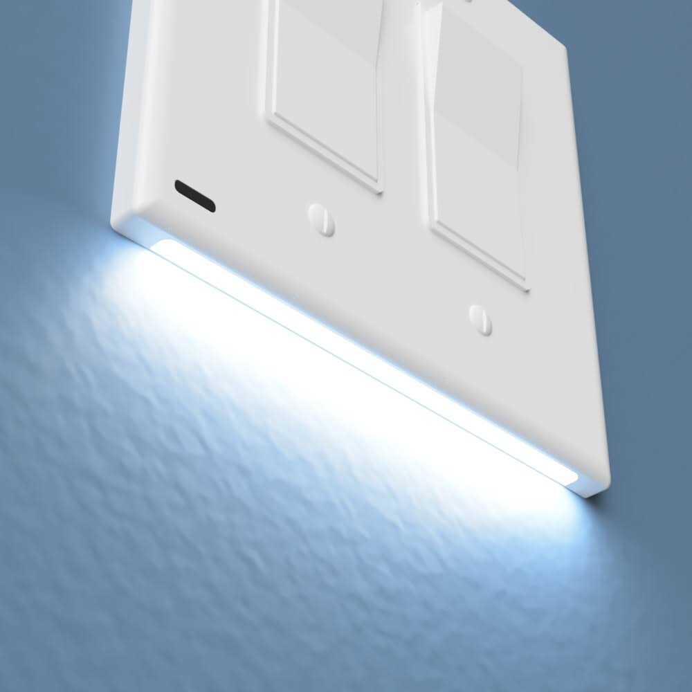 SwitchLight is a light switch cover plate with built-in LED lights that are activated by an automatic on/off sensor. It provides beautiful accent, pathway, and night lighting for your home, and makes it easy to spot your light switches in the dark, no matter how sleepy and disoriented you may be! SwitchLight is perfect for hallways, bathrooms, kitchens, and more. Its LED lights provide up to 25 years of reliable illumination, and it includes a switch to easily toggle between bright, dim and off settings. FEATURES Compatible with all standard double gang light switches Works on 3-way switches where multiple switches control the same set of overhead lights. Works on single-pole switches also.