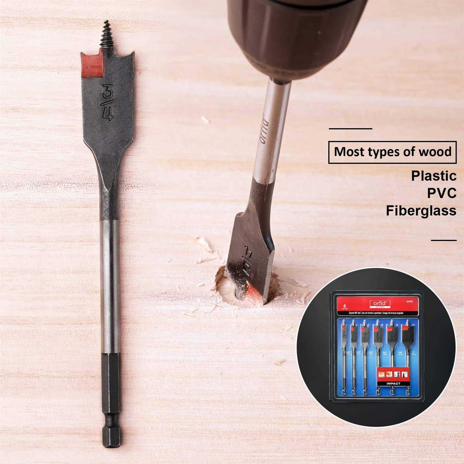 soikoi 6 pc Standard Spade Bit Drill Bit Set,Threaded Spade Bit with Quick Change Shank for Hole Cutter Woodworking