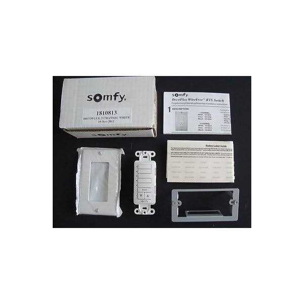 Somfy’s DecoFlex RTS Wall Switch (5 Channel) controls five Somfy RTS motors or five groups of motors. It is available fully assembled. Easy To Use: Select the appropriate channel button(s) and the adjacent amber LED(s) with illuminate. Then simply press the command button (up, down, stop) to adjust your window covering(s) to the desired position. Simple To Install: Installation is quick and simple, no wiring is required. Included with each switch is an extended life lithium battery. The DecoFlex WireFree RTS may be installed independently or next to an existing light switch using the included wall mounting bracket and the appropriate wall plate. Included with each switch is a wall mounting bracket, blank channel button(s), temporary stick on channel button labels and wallplate.