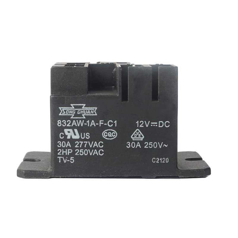 Song Chuan 832AW-1A-F-C1 12VDC 30A 250VAC General Purpose Power Relay Black