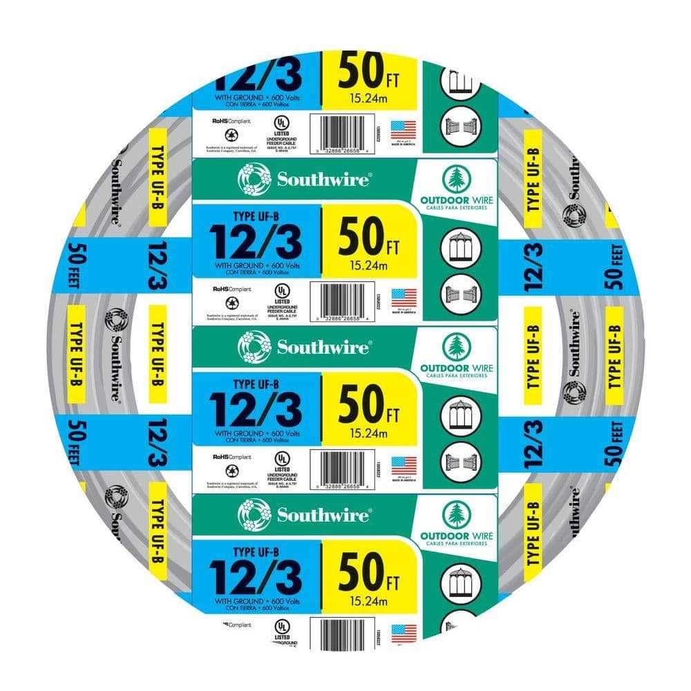 Southwire 13058322 50′ 12-3 UFW/G Wire
