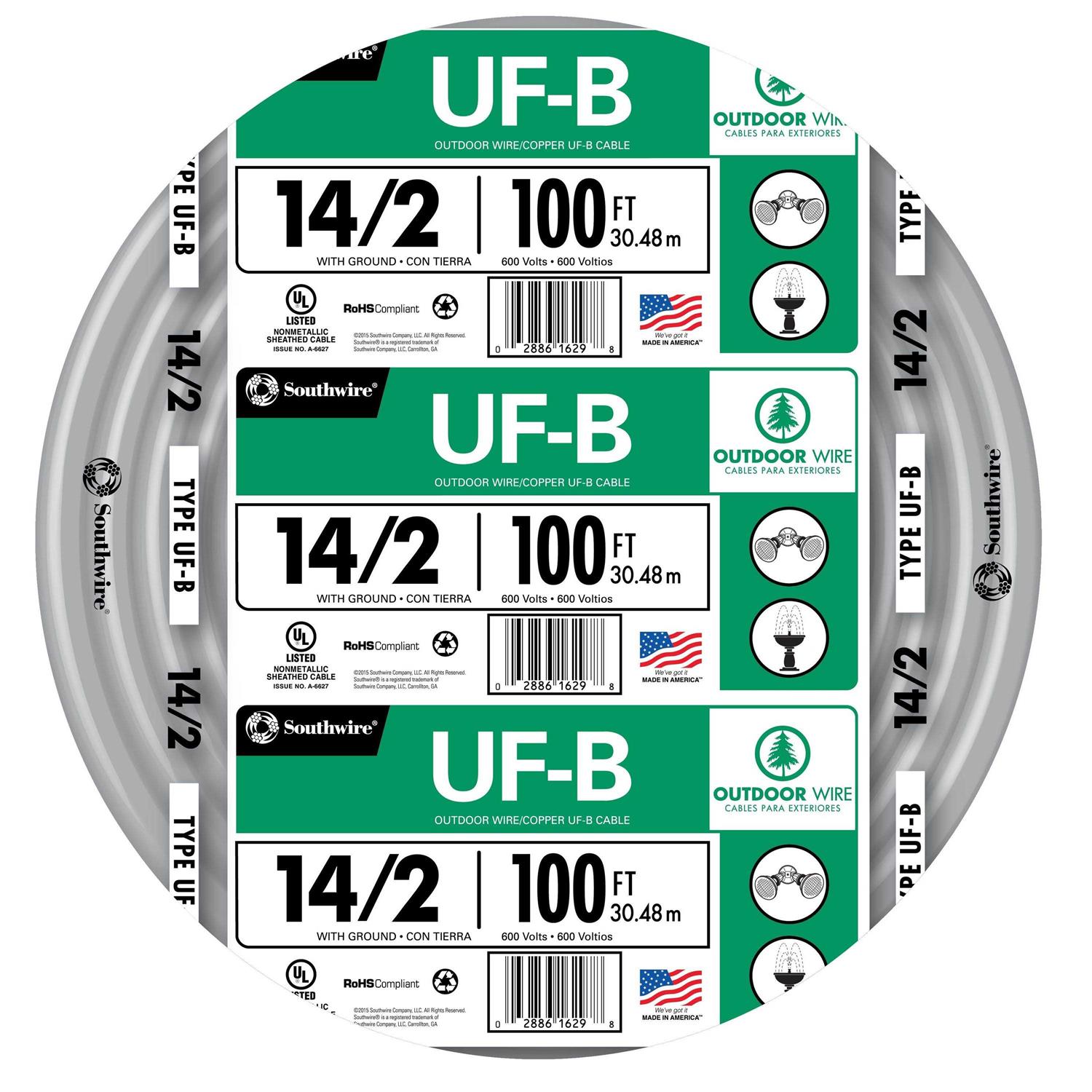 Southwire 14/2 UF W/G 100′ Wire 13054226