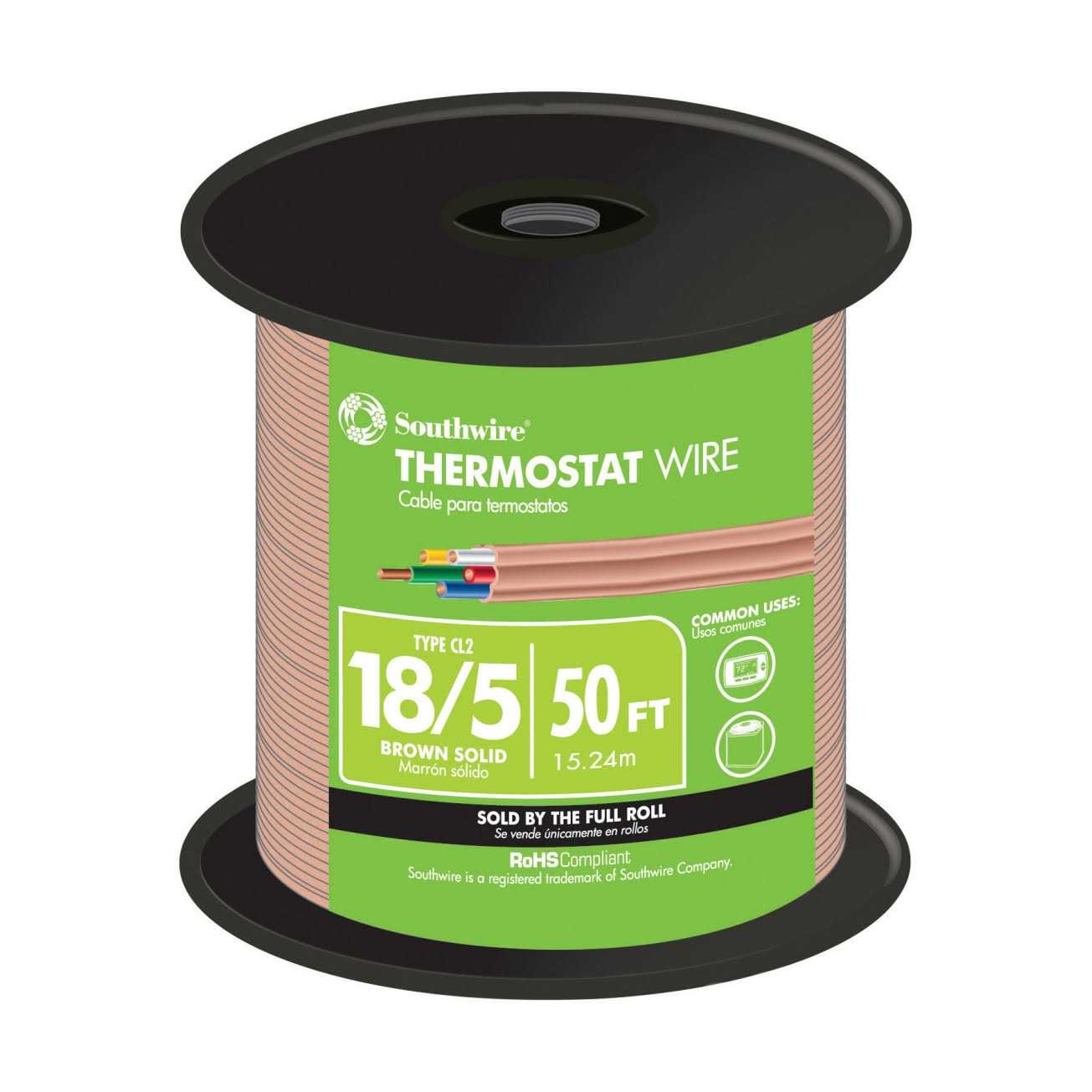 Southwire 18/5 Copper Thermostat Wire, Brown, 50′