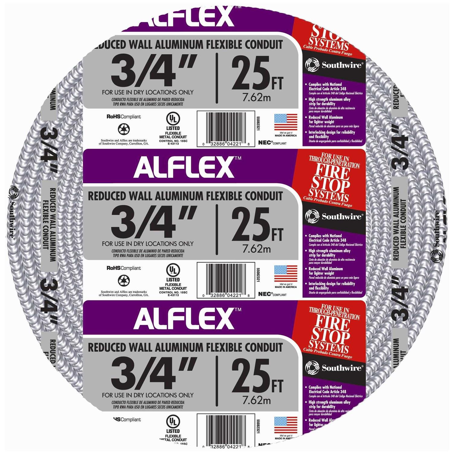 Southwire 3/4″ x 25′ Aluminum Flexible Metal Conduit
