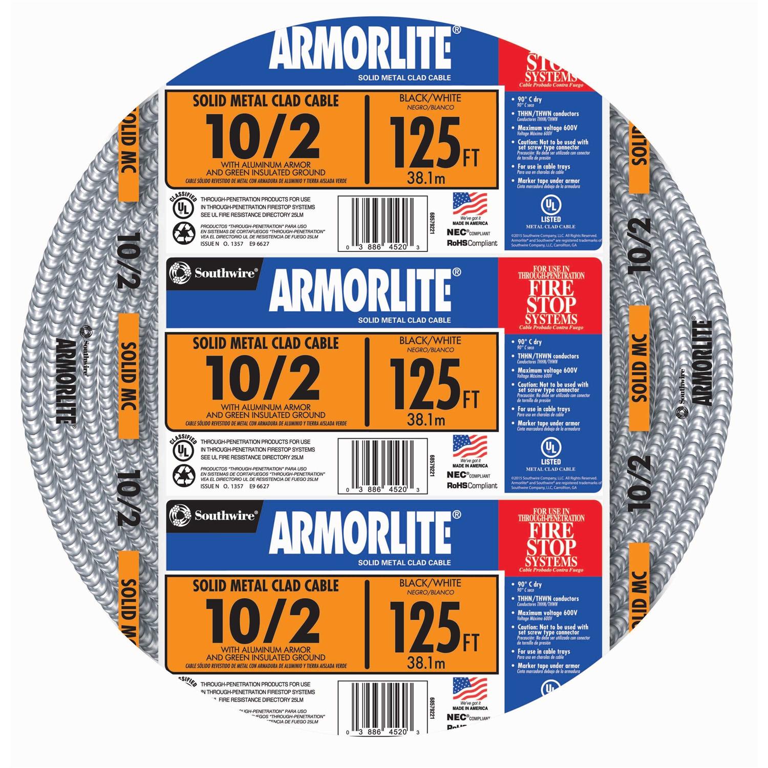 Southwire Armorlite 125-ft 10/2 Solid Aluminum MC Cable