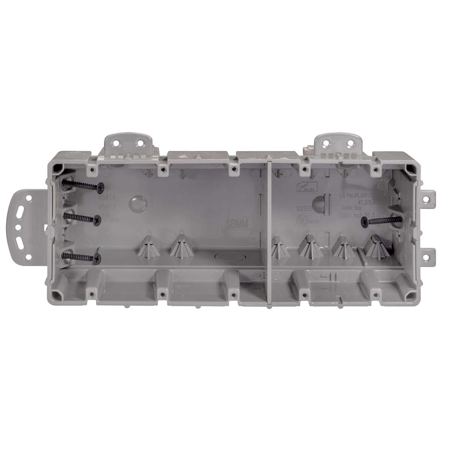 Multi-mount device boxes are a hybrid of the Original Smart Boxes. Like the Originals Multi-mount boxes are great for both new work and old work applications. Unlike the Originals these boxes offer additional features such as removable nail tabs for metal stud mounting removable interior mounting blocks to allow for more cubic inch in the box and built-in mounting blocks on the top end of the box for vertical mounting. Additionally 1/2 in. knock outs allow for ENT or PVC conduit connections while low voltage wall dividers allow for mixed voltages in the same box. The culmination of these added features creates an even more user-friendly device box.