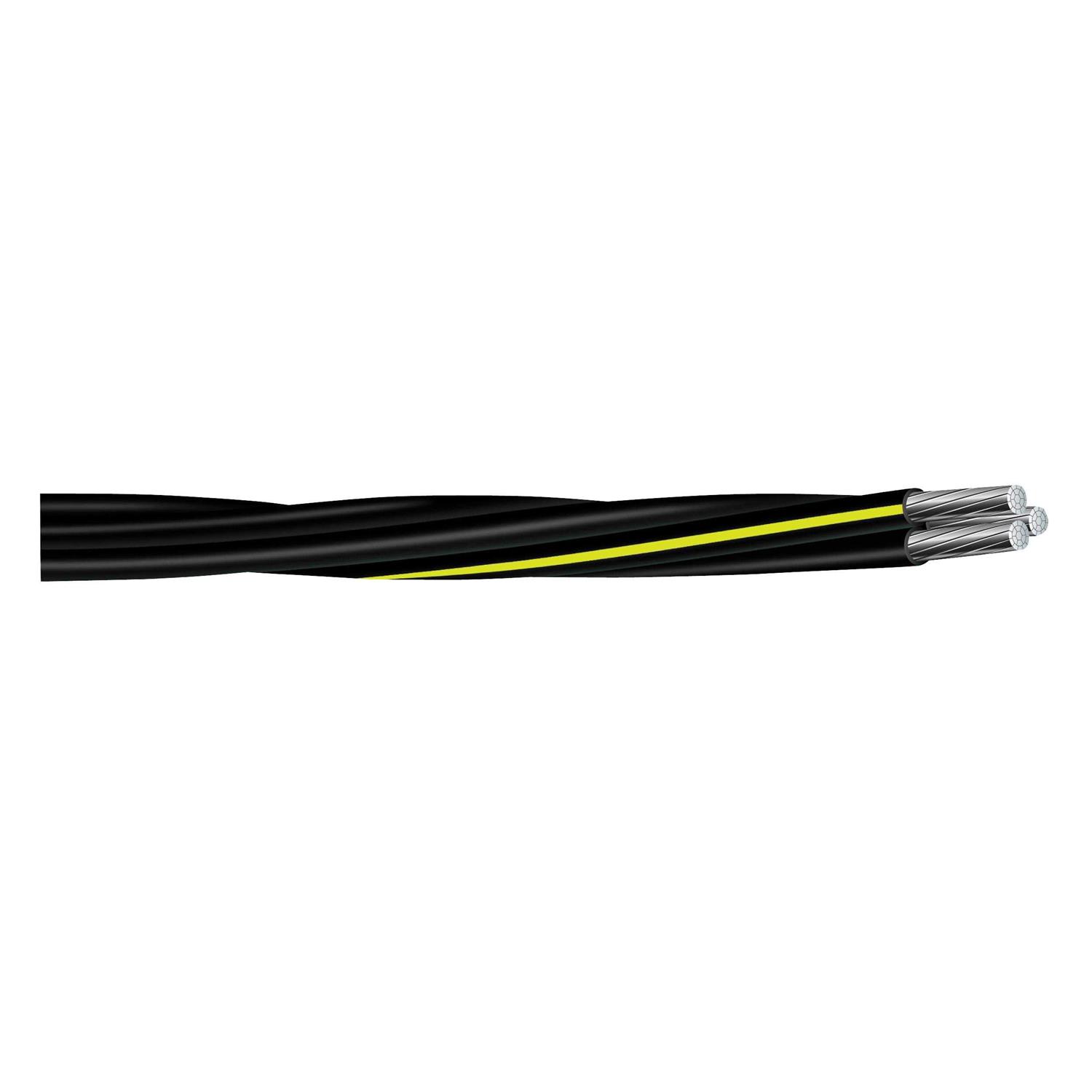 Aluminum conductors, polyethylene insulation. Used for secondary distribution and underground service at 600 volts or less, either direct burial or in ducts. 500-feet. UL (Underwriter’s Laboratories) listed.