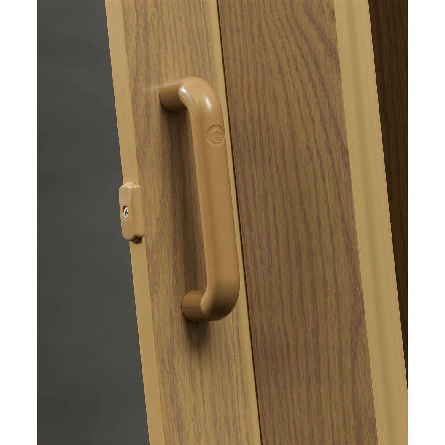 Expandable door, with flexible vinyl hinges, helps stop drafts. Coated with a UV varnish that resists fading and scratching. Cut or expand with only a saw or screwdriver. For openings wider than 24″ smaller openings or it can be combined with an expansion kit for openings up to 6′ wide; double doors can fit openings up to 12′ wide, expansion kit (not included). May be installed as a double door, using two single doors. Fully assembled, includes magnetic catch, 6′ track with lubricant pack, necessary hardware, and easy-to-follow instructions.