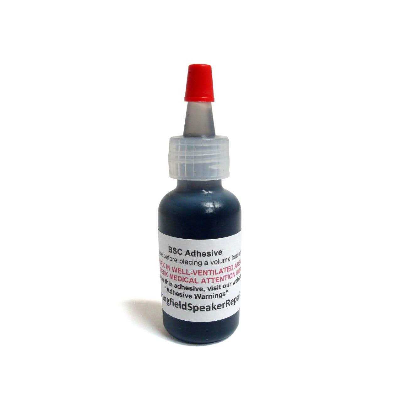 Pro-Grade Rubberized Speaker Repair Adhesive Glue Professional-Grade hexane-based rubberized adhesive specially formulated to form a permanent, flexible bond. This is the REAL THING!! Available size options: 1/2oz, 1oz, 2oz, 4oz, 8oz and 16oz 1/2 oz is enough to replace the surrounds on 2 – 10″ speakers. MANY quality speaker manufacturers and professional reconers use this for: Attaching cones/surrounds to speaker frames Replacing/attaching foam surrounds Attaching dust caps Attaching gaskets Repairing holes in cones NOT for attaching voice coils! Tacks in 5 minutes, fully-cured in 24 hours. Yorker lid included