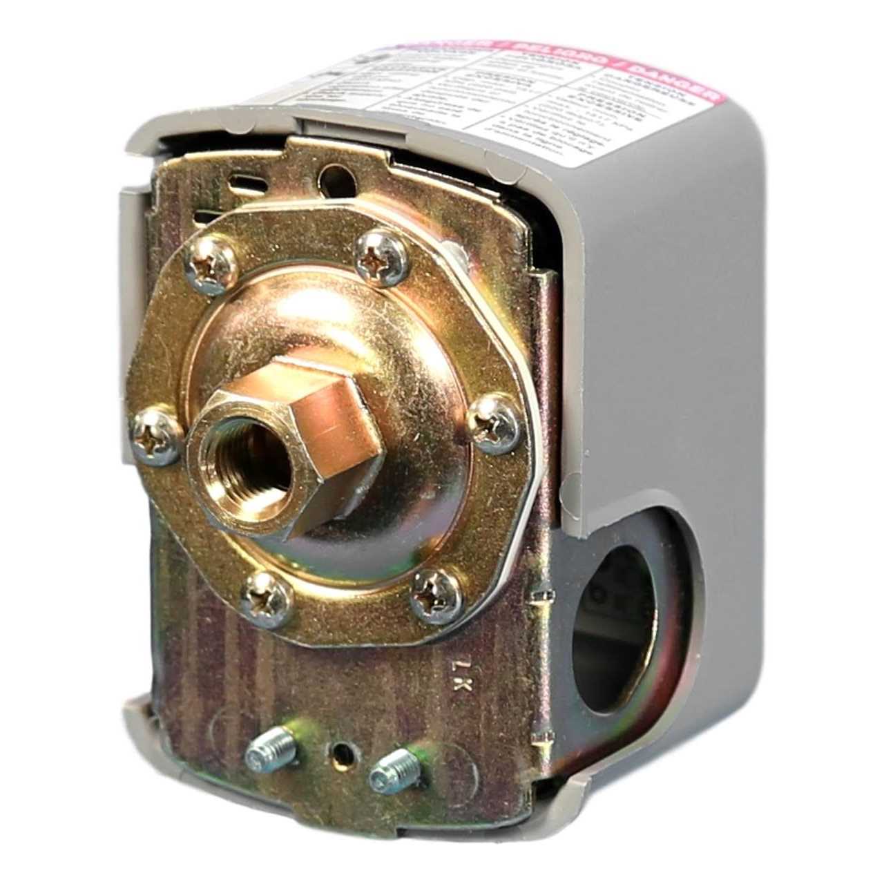 Adjustable differential; diaphragm operator; operating pressure rating 5 to 45 psig (cut in) – 20 to 65 psig (cut out); differential pressure rating 15 to 30 psig; pressure media water; contact configuration dpst.”