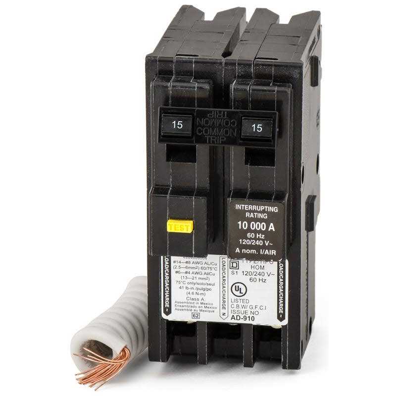 Homeline 15 amp two-pole gfci circuit breaker Plug-on design, easy to install Compatible with Homeline load centers and CSED devices 120/240 V The Square D by Schneider Electric Homeline 2 pole, 15 amp GFCI circuit breaker is designed for overload and short-circuit protection, combined with class a ground fault protection. Class a denotes a ground fault circuit Interrupter that will trip when a fault current to ground is 6 ma or more. This breaker is compatible with Homeline load centers and CSED devices. The ansi-certified and ul-listed unit is rated for 120/240 V AC and 10, 000 air.Homeline circuit breakers are built with the same square D brand quality you have come to expect at a price that makes them the best value in their class.Homeline circuit breakers are the best in class. Designed exclusively for the residential market, Homeline products offer everything you need to distribute electricity throughout your home.