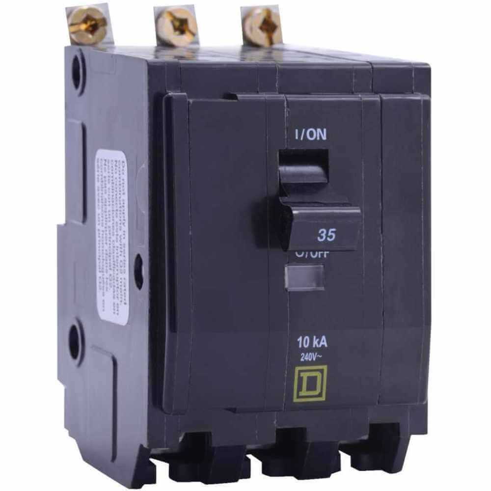 It has an interrupt current rating of 10-Kilo-Amps at 120/240-Volts AC 5-Kilo-Amps at 48-Volts DC 10-Kilo-Amps at 120-Volts AC and 10-Kilo-Amp at 240-Volts AC to provide fast short circuit interruption. The thermal magnetic trip offers overcurrent short circuit protection. This bolt-on mountable miniature circuit breaker has 3-space 100-Amp/QO frame and box lug terminal. It accommodates 8-2-AWG aluminum or copper conductors. Miniature circuit breaker measuring 2.25-Inch x 2.91-Inch x 3-Inch is suitable for use with Square D NQOD panelboards. The miniature circuit breaker meets UL CSA and HACR standards.