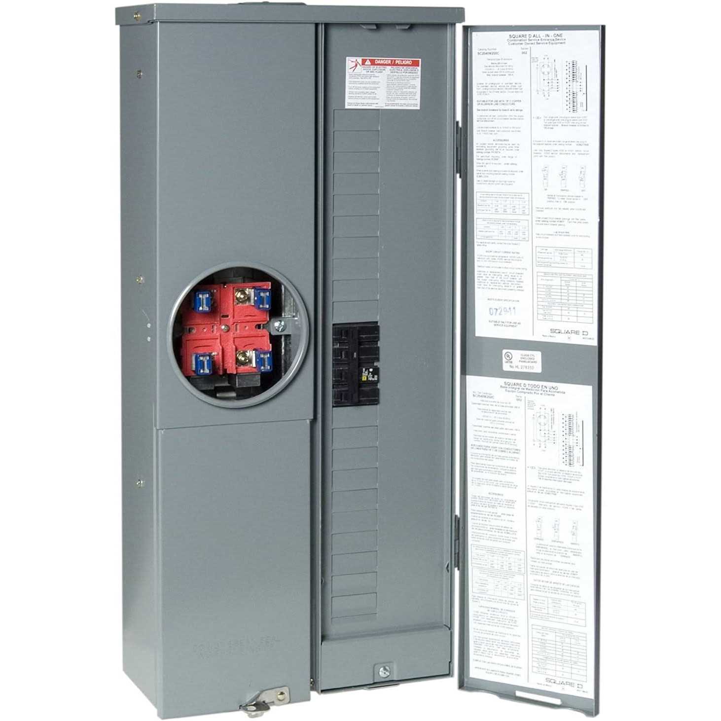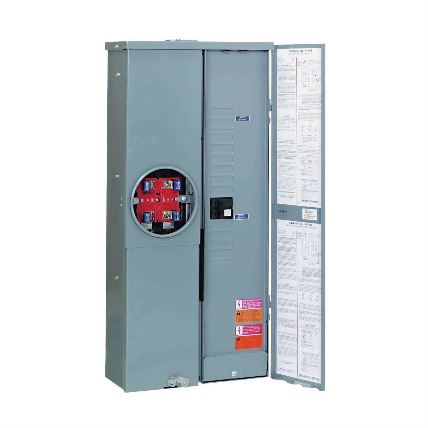 Combination service entrance device CSED referred to as an all-in-one that includes the utility meter socket main service disconnect and integral load center in a single enclosure. Meets EUSERC standards. Service disconnects are supplied factory installed. Supplied with 100% branch neutrals. Meets Federal Specification W-P-115c as Type 1 Class 2. Convertible to semiflush with SC200F flange kit sold separately. Suitable only for use as service equipment. UL listed.