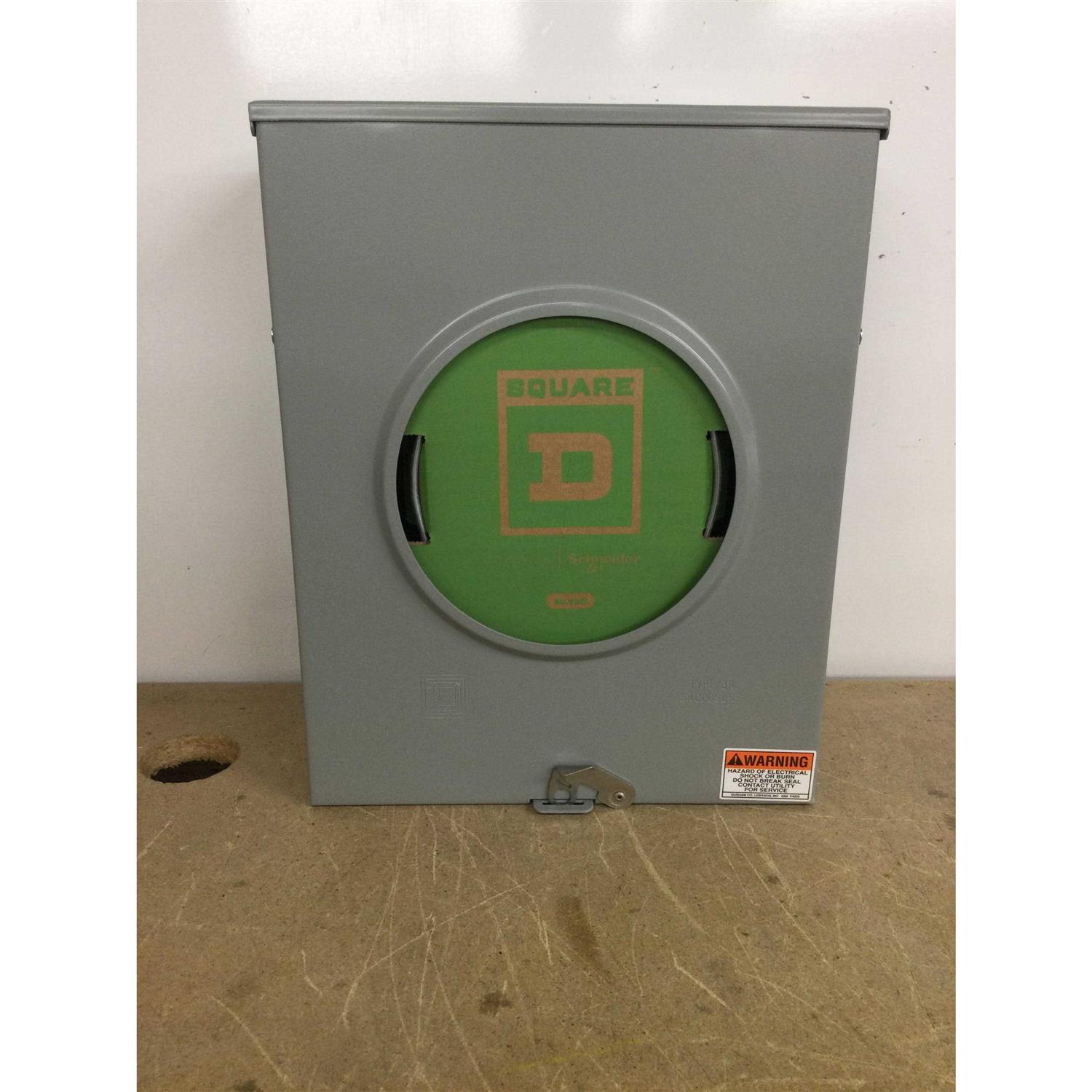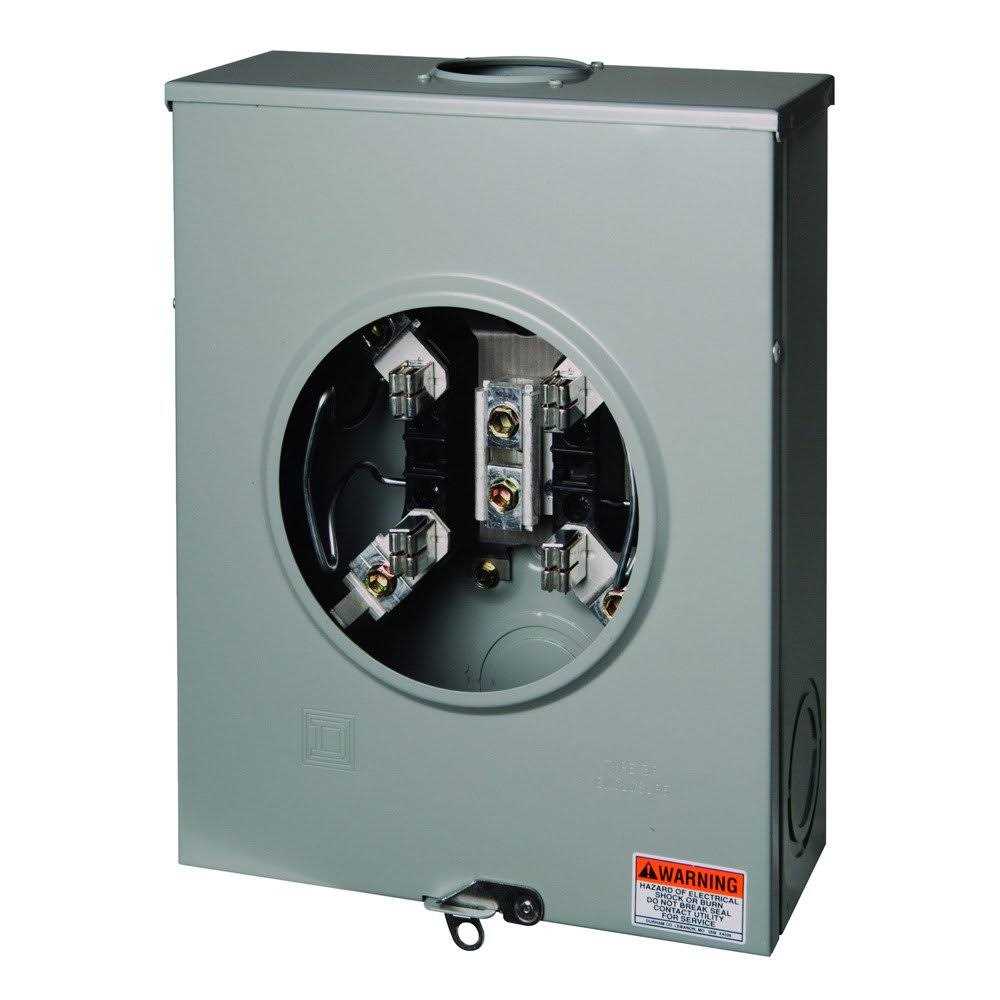 The square d 200 amp residential ringless meter socket with horn bypass surface mounts to provide for a single electric meter. It accommodates multiple wiring configurations for a size hub provision in the top end wall and a 2-1/2 in. Maximum knockout in the bottom end-wall. The meter main uses an aluminum bus, is single phase, three wires, and features a nema 3R rated enclosure for outdoor use. This unit is ansi certified and ul listed for use as service entrance equipment with a maximum load of 600 vac max. This 4-jaw meter socket is compatible with #250Mcm connectors maximum line and load conductor and neutral.