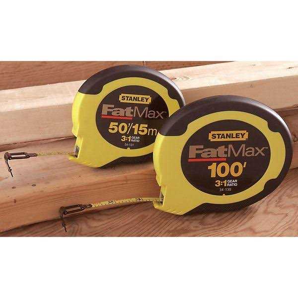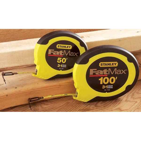 The STANLEY 100 ft by 3/8 in FATMAX long tape rule makes rewinding a breeze with a 3-to-1 gear drive for faster rewind. A stainless steel blade ensures long life while a steel roller cage protects the case from being cut by blade curing retraction. The high-impact ABS case withstands rugged conditions and a rubber, slip-resistant grip assures a solid hold. The Tru-Zero end hook allows accurate inside and outside measurements.