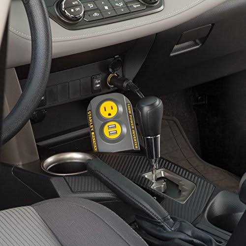 The Stanley 140 Watt patented power inverter charges via AC and USB outlets. Just plug the power cord into a vehicle’s 12 volt DC port (cigarette lighter) to enjoy the convenience of a household outlet and USB ports. The additional (2) USB ports allow you to charge and power smart phones, tablets and much more from just about anywhere. The inverter includes (1) AC electrical household outlet to charge laptops, video games, cameras and other small electronic devices.