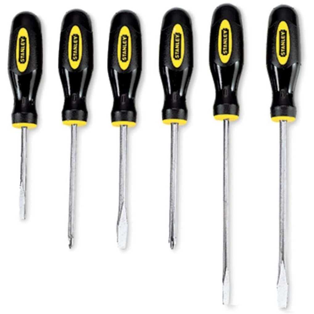 SKU 32148435-Equip your tool box with six of the most popular standard, cabinet and Phillips fluted screwdrivers. With the STANLEY six-piece screwdriver set you’ll be ready to tackle a wide range of fastening projects. Featuring hardened tips and slip-resistant, ergonomically designed handles, you’ll find yourself reaching for these tough screwdrivers again and again.