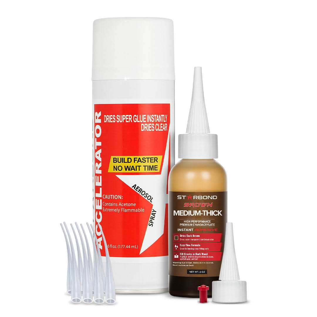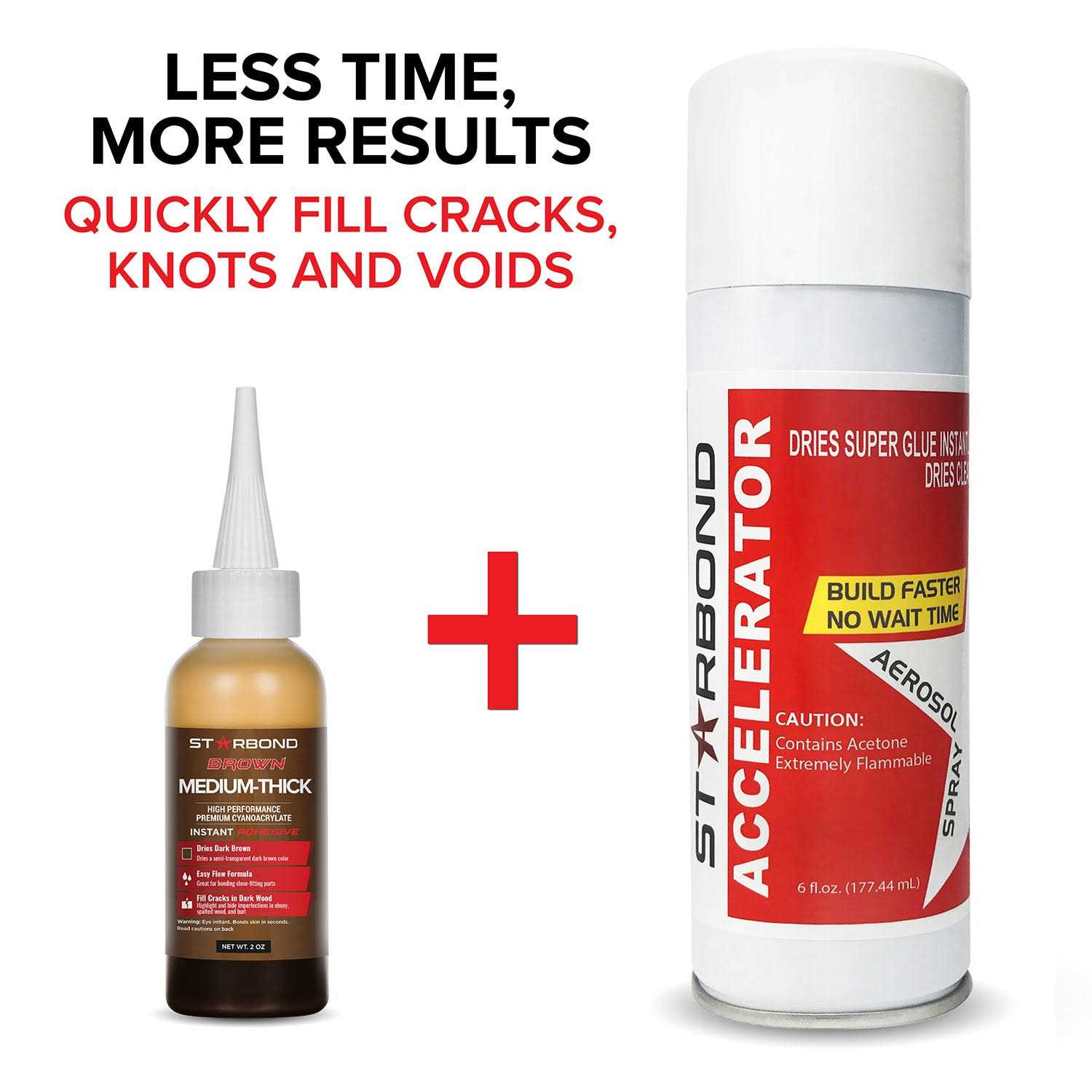 Starbond 2 oz. Dark Brown Medium-Thick Premium CA Glue, 6 oz. Aerosol Accelerator Bundle, Cyanoacrylate Adhesive Super Glues for Woodworking, Wood