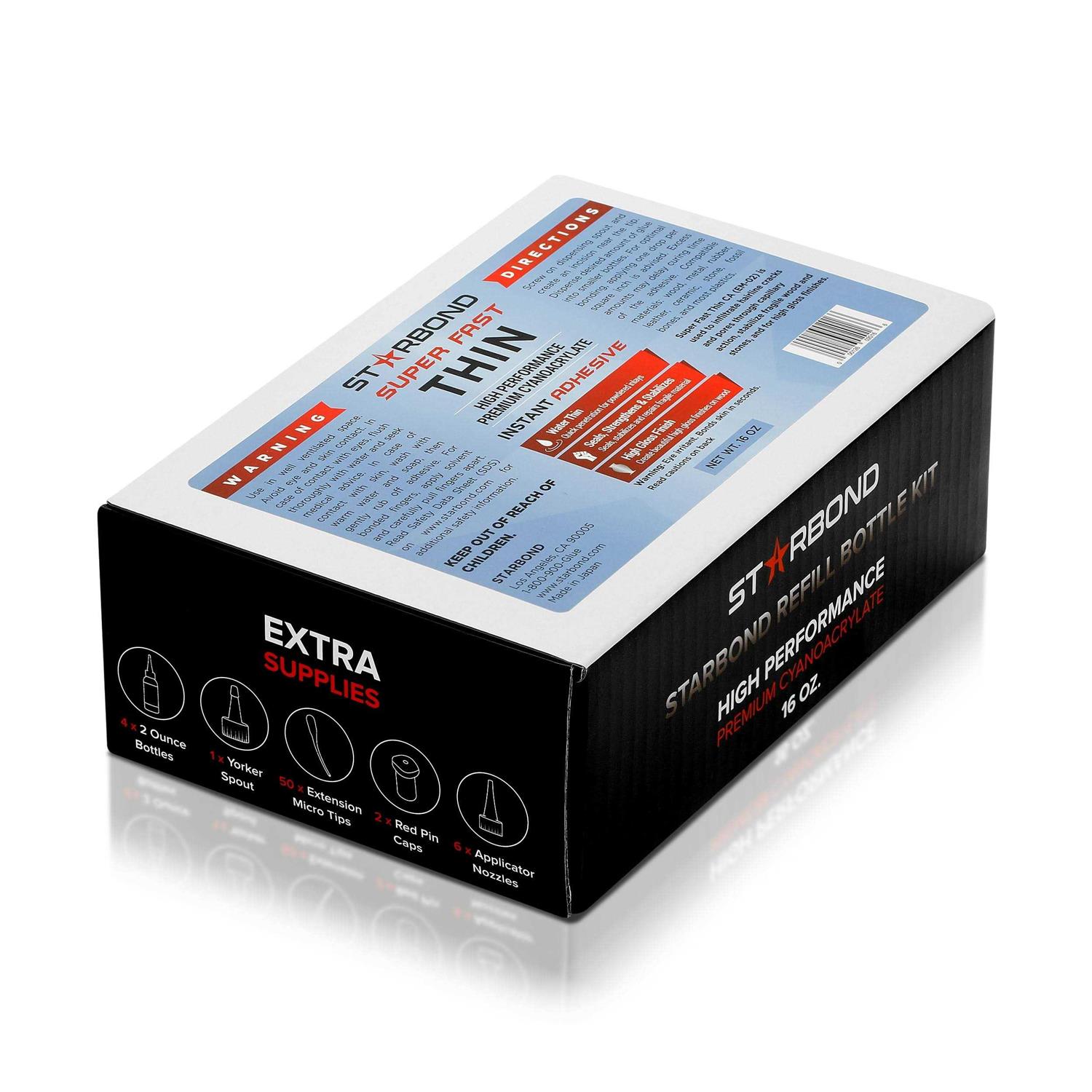 Starbond EM-02 Super Fast Thin, Premium CA – Super Glue Plus Extra Bottles, Caps, and Microtips, 16 oz.