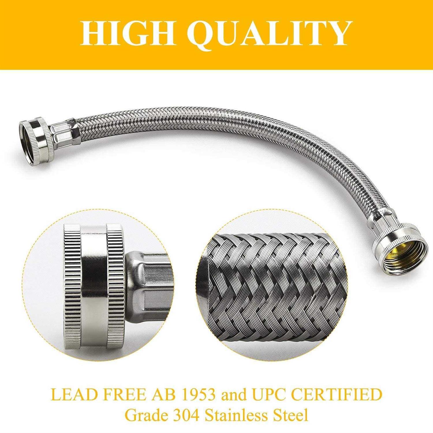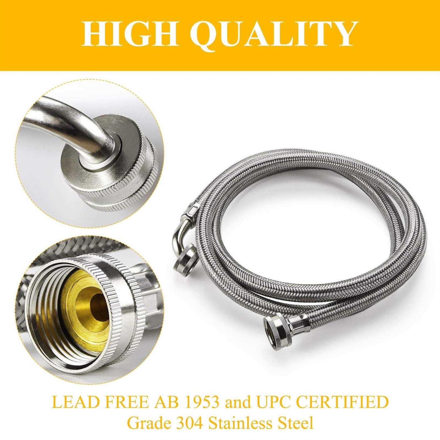 Hoses by TOMOON. Details:TOMOON Steam Dryer Hose Installation Kit,Stainless Steel Hoses for Washer Dryer UNIVERSAL FIT TO ALL WASHING MACHINE BRANDS – Our hoses connect securely to any standard washing machine and standard supply line and includes the washer inserts. 1500psi,Corrosion Resistance,304 Stainless Steel,UPC CERTIFIED,LEAD FREE AB 1953 LEAD FREE AB 1953 and UPC CERTIFIED. Grade 304 Stainless Steel, PVC Core, BRASS nuts, ferrules and nipples for superior Corrosion Resistance Widely used UNIVERSAL FIT TO ALL WASHING MACHINE BRANDS .