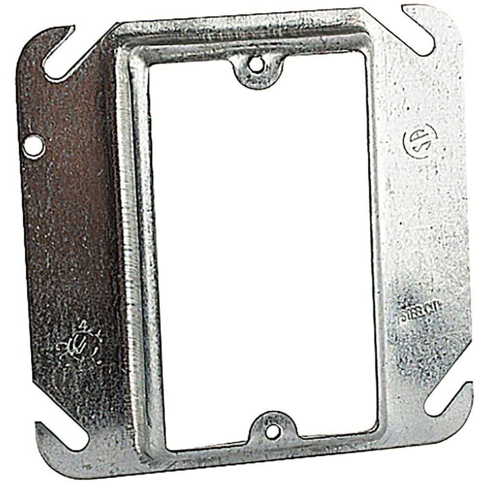 The 1-gang square mud ring fits over an electrical box. Provides additional height for flush covering. This 5/8 in. raised mud ring offers a rectangular hole to accommodate a handy box cover.