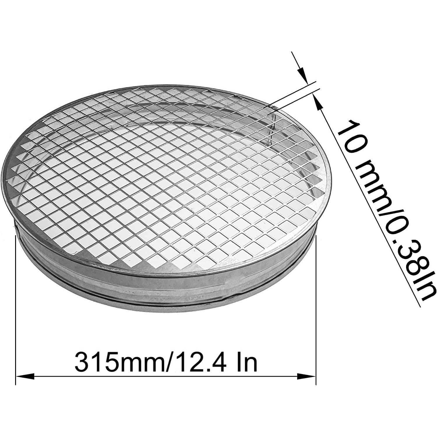 12″ inch (NET 3/8″ x 3/8″ inch) Duct End Cap with Steel Mesh – Round Galvanized Steel Cap, Steel Screen – Vent Duct End Cap – Available Different