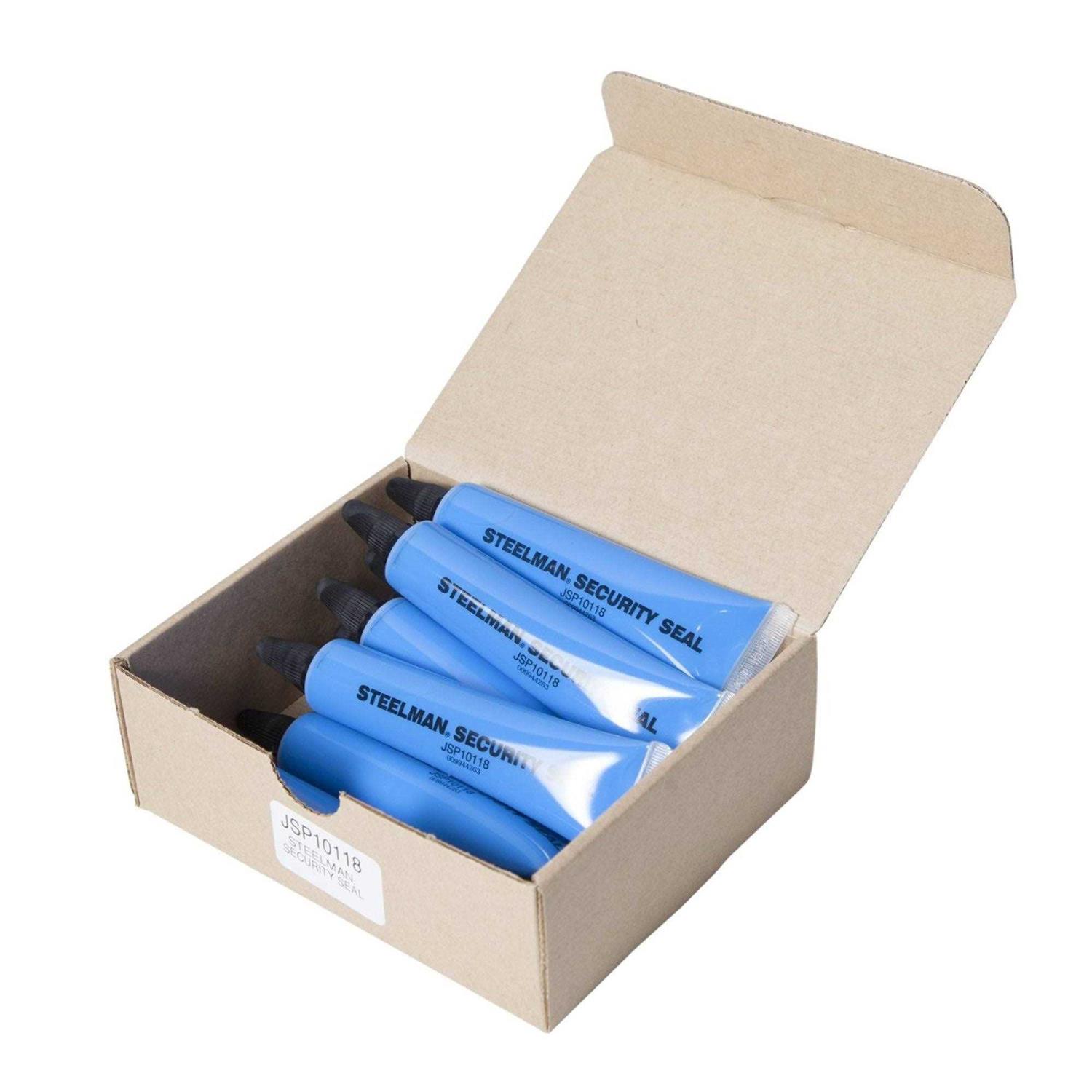 STEELMAN JSP10118 Security Seal is an ideal way to keep yourself protected from both intentionally tampered fasteners or just ones that have worked themselves loose due to vibration and normal operation. When used to mark properly torqued fasteners by creating either a seal along the base or a line that runs across the fastener head and onto the surrounding surface, you can tell with a quick glance if that fastener has been loosened if that seal is broken. The bright blue color of the seal stands out in contrast to most metal and plastic automotive and small engine components, will not fade in the sun or wash off in rain, but is still easily removed in the event of tampering or for servicing. Adheres easily to most metal and plastic surfaces even when they aren’t showroom clean. The quick drying formula is thick enough to stay where you put it and comes in a 1-ounce tube with easy application tip. Comes in a box of 10 tubes.