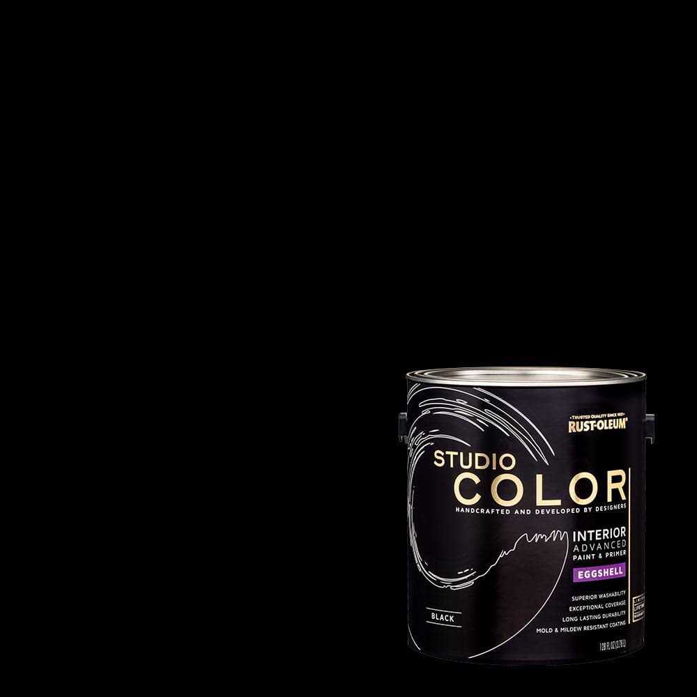 Black, Rust-Oleum Studio Color Black, Interior + Primer Eggshell Finish, Gallon: Offers a curated collection of designer, pre-mixed colors that will make any space stunning. Paint rolls on smooth and delivers long-lasting durability, exceptional coverage and superior washability. The handcrafted color palette comes in three sheens: flat, eggshell and semi-gloss. Studio Color is perfect for homeowners looking for a dcor refresh and works well in high-traffic, family spaces. Studio Color a perfect match to elevate your style!