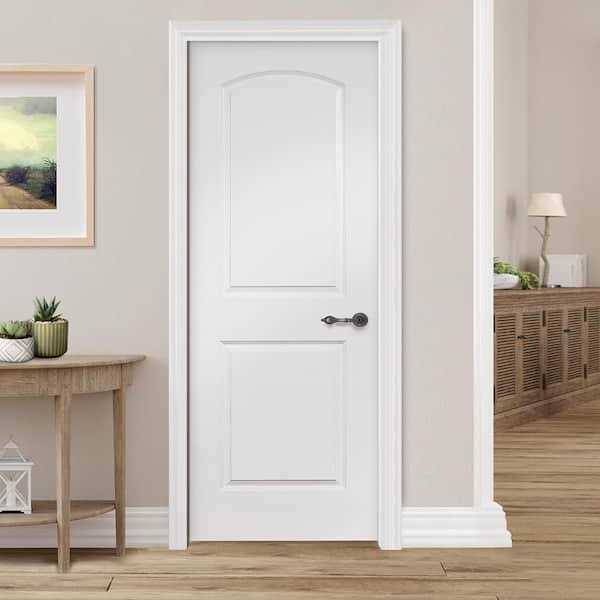 The 2-Panel Roundtop Primed White Solid Core Interior Non-Bored Slab Door features a primed 2-Panel design that can be painted or stained to suit a range of interior decors. The 2-Panel features a modified bead and cove sticking profile for an elegant touch. The durable 1-3/8 in. thick slab is ready to fit in existing opening. Color: White Primed.