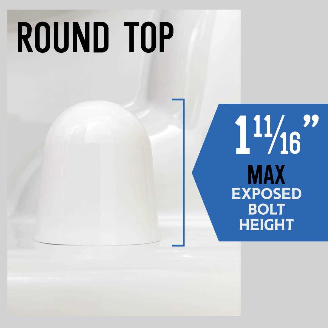 New round top design! Universal Size: These caps will fit either 1/4 inch or 5/16 inch threaded bolts. Round Top Style is 1/8 inch taller than flat top style. Don’t Cut Those Bolts! Why cut the bolts when you can just add a cap? They are paintable to match your toilet Screws On, Stays On! No more unsightly, loose fitting caps. Quick and easy installation Made in the USA with a sleek patented design New Stinky John’s Toilet Bolt Caps with a sleek, rounded top and new colors!