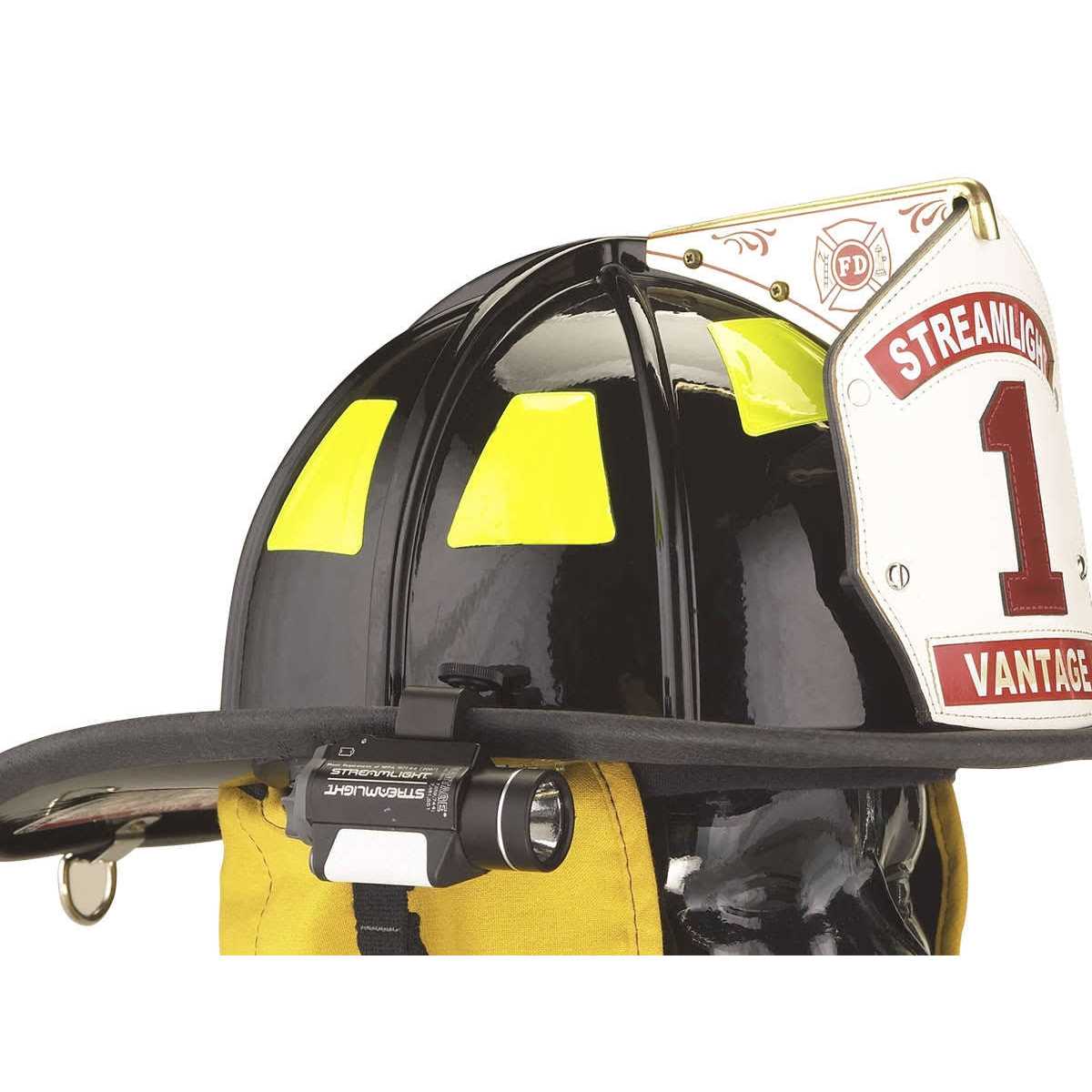 The Vantage Helmet Mounted Tactical Light from Streamlight is a powerful hands-free light optimized for firefighter use and application. It features a powerful C4 LED lamp that offers superior brightness and consistent beam strength. With a 60 lumen beam-strength and six hours of continuous runtime, this flashlight ensures maximum visibility and dark or smoke filled areas. It is secured to the helmet with a high-strength clamp that fits both modern and traditional styles. It can be rotated a full 360 degrees for total visibility from any direction. To add to its tactical functionality, the unit is 100 percent waterproof and is both temperature and impact resistant.