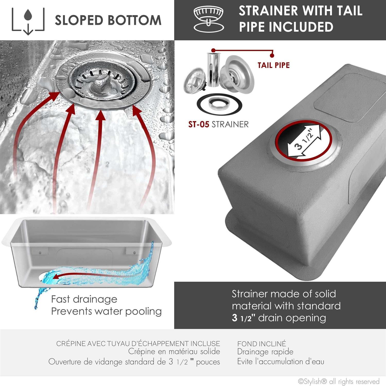 - STANDARD STRAINER INCLUDED: Includes a standard strainer to prevent clogging, designed to fit industry-standard 3.5″ sink drain opening.