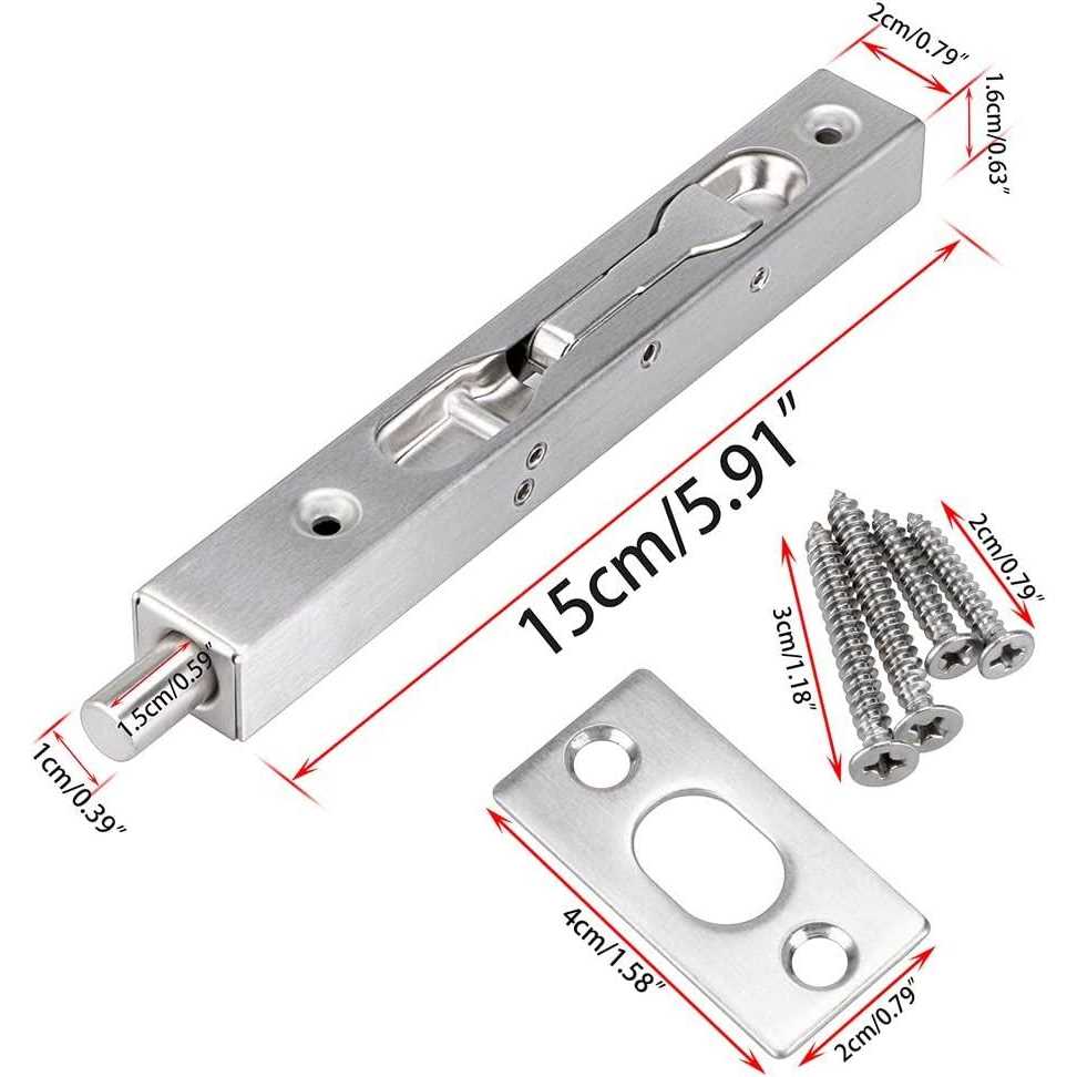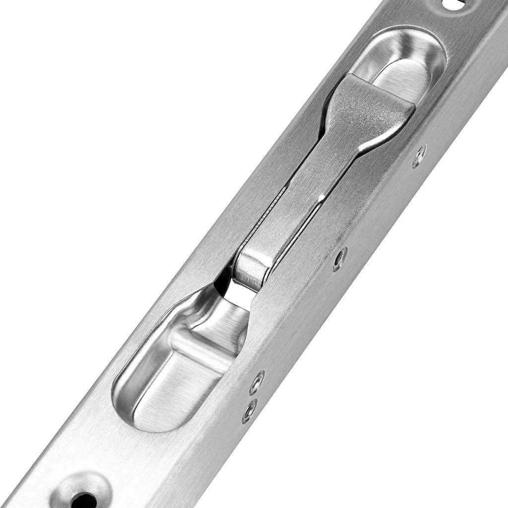 Flush bolt be used to secure the opening for composite door,French, patio, wood, double or other doors.This great small device features automatic holding spring to provide tension for both retracted and projected positions.It often be installed on inactive leaf of double door opening (top and bottom) to offer safety function. Our flush bolts are all machined from solid stainless steel for anti corrosive and rustproof,heavy duty and durable. Installing a flush bolt to make a nice addition to security of your home. Size : Length=6″(15cm), Width=0.79″(2cm), Depth = 0.67″(1.7cm); The interior part of the flush bolt is reinforced by screws to enhance stability and fluency of the structure. Install on inactive leaf of double door opening. Integrated design of the switch is easy for daily use,Say goodbye to the one with “push just ride and slide” type,this lever type with comfortable touching and concealed style will surely offer you enjoyable usage and match your modern decoration. Easy to install,comes with rust-proof screws and surface strikes for installation.Constructed from stainless steel,screws will provide extra strength to engage and interlock firmly so as to be immobile.