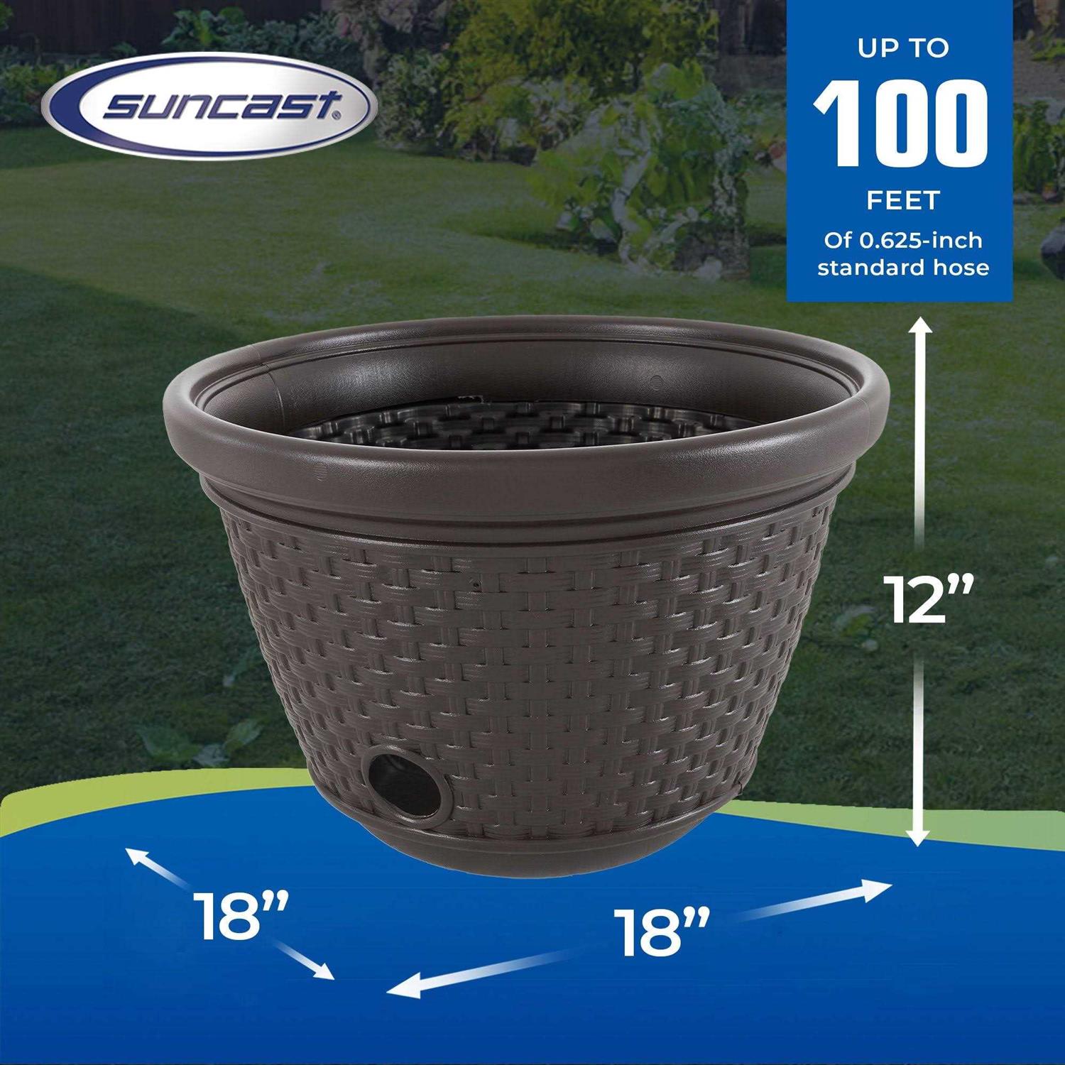 Suncast 100 Foot Resin Wicker Garden Water Hose Storage Holder Pot (2 Pack)