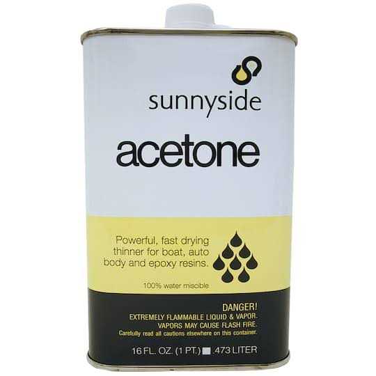 Sunnyside 84032 Acetone 1 Quart is a powerful, fast-drying solvent primarily used for thinning polyester resins used in fiberglass boat and auto body repairs. Water miscible. Also use for thinning epoxies, lacquers and many adhesives and as a pre-paint cleaner and degreaser for metal surfaces. Read label carefully before use.