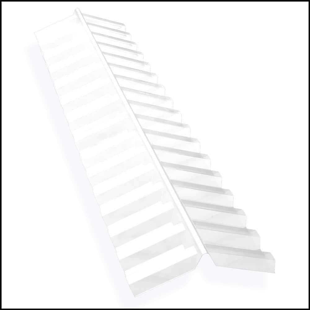 Clear Polycarbonate ridge cap is used to cap a traditional peaked or A-frame roof covered with Suntuf Polycarbonate panels. Clear flashing can be used with any color Suntuf panel. Flashing is flexible and can be bent to a variety of roof pitches for easy installation. 4 ft L x 12 in W.