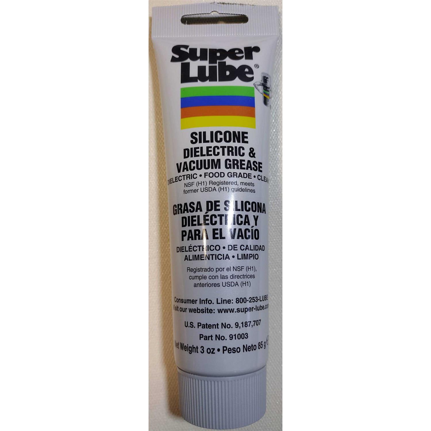 3 oz tube Super Lube Silicone High-Dielectric & Vacuum Grease Super Lube Silicone Dielectric Grease is a non curing Silicone compound utilized for sealing, protecting and insulating electrical components and connectors. Super Lube Silicone Dielectric Grease is waterproof and protects against moisture and other contaminants in electrical connections, is translucent white, clean and clear in appearance and exhibits high dielectric strength and is compatible with most plastics and withstands temperatures from -40 F to 500 F.