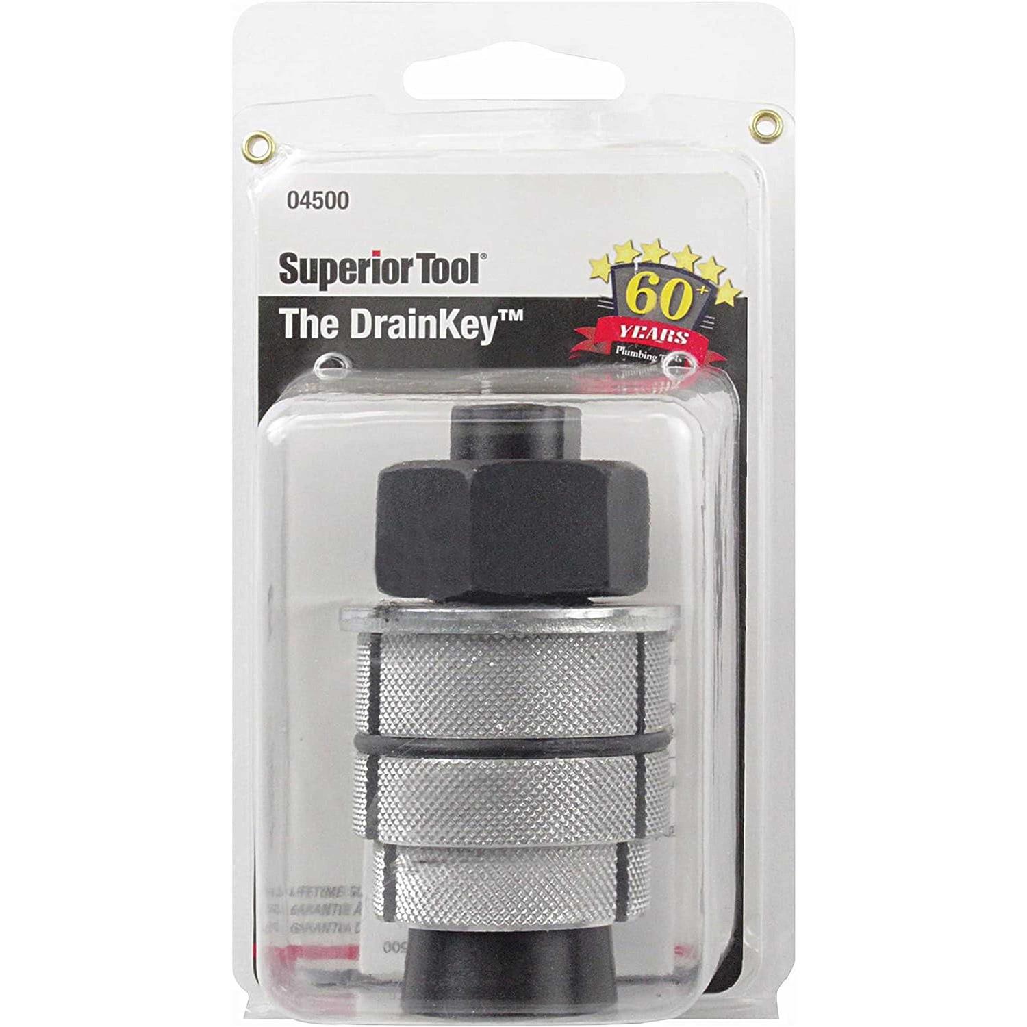 The Superior Tool 4500 Drain Key allows you to unlock and install new drains into your bathtub. It has an expanding design that internally grips to the drain in a 360-degree pattern, making it easy to unlock your drains and remove them. You can also use a crescent wrench with this Superior Tool drain key so that you can install and unlock various shapes and sizes of drain. This tool expands in the drain using three knurled steel shoes. Turn the drain out with the bathtub drain key using the large nut. Stubborn tub drains are a thing of the past with this extractor tool.