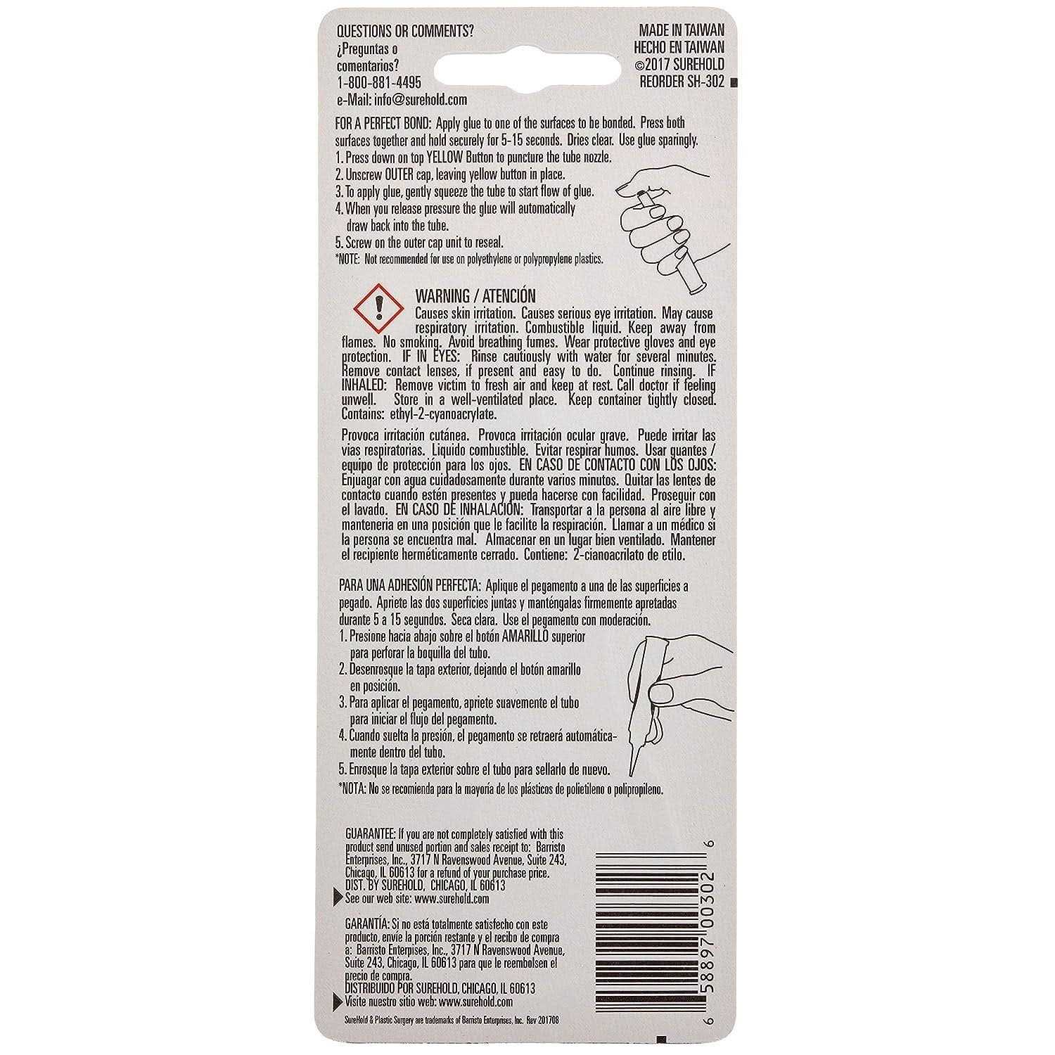 Drip-proof, clog-proof patented applicator allows precision application Tube won’t clog or dry out like other glues Use tube again and again SUREHOLD-Plastic Surgery Super Glue. This strong-bonding super glue is specially formulated to bond plastics including acrylic, ABS, EPDM, nylon, fiberglass, plexiglass, polyester, PVC, and more! This package contains one 0.11oz/3g tube of super glue. Caution: Eye Irritant. Imported.