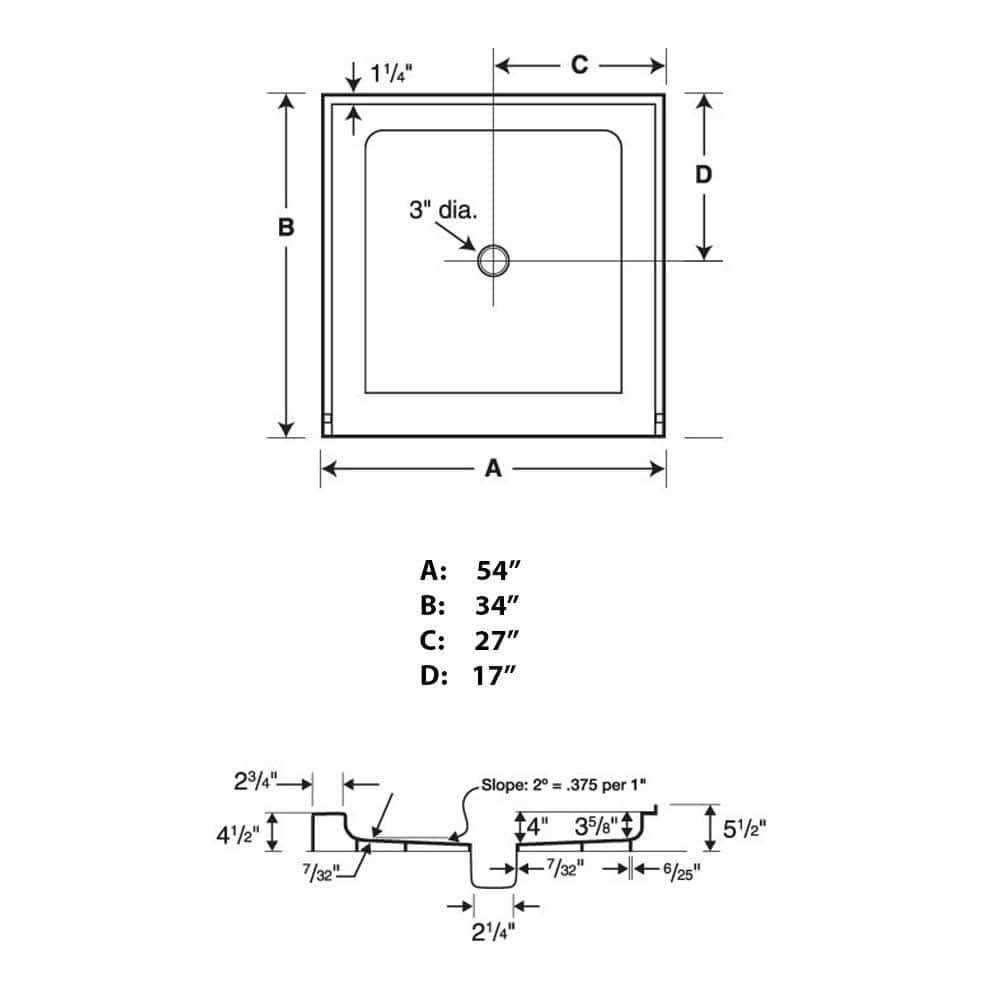 Swanstone Veritek 34 in. x 54 in. Single Threshold Center Drain Shower Pan