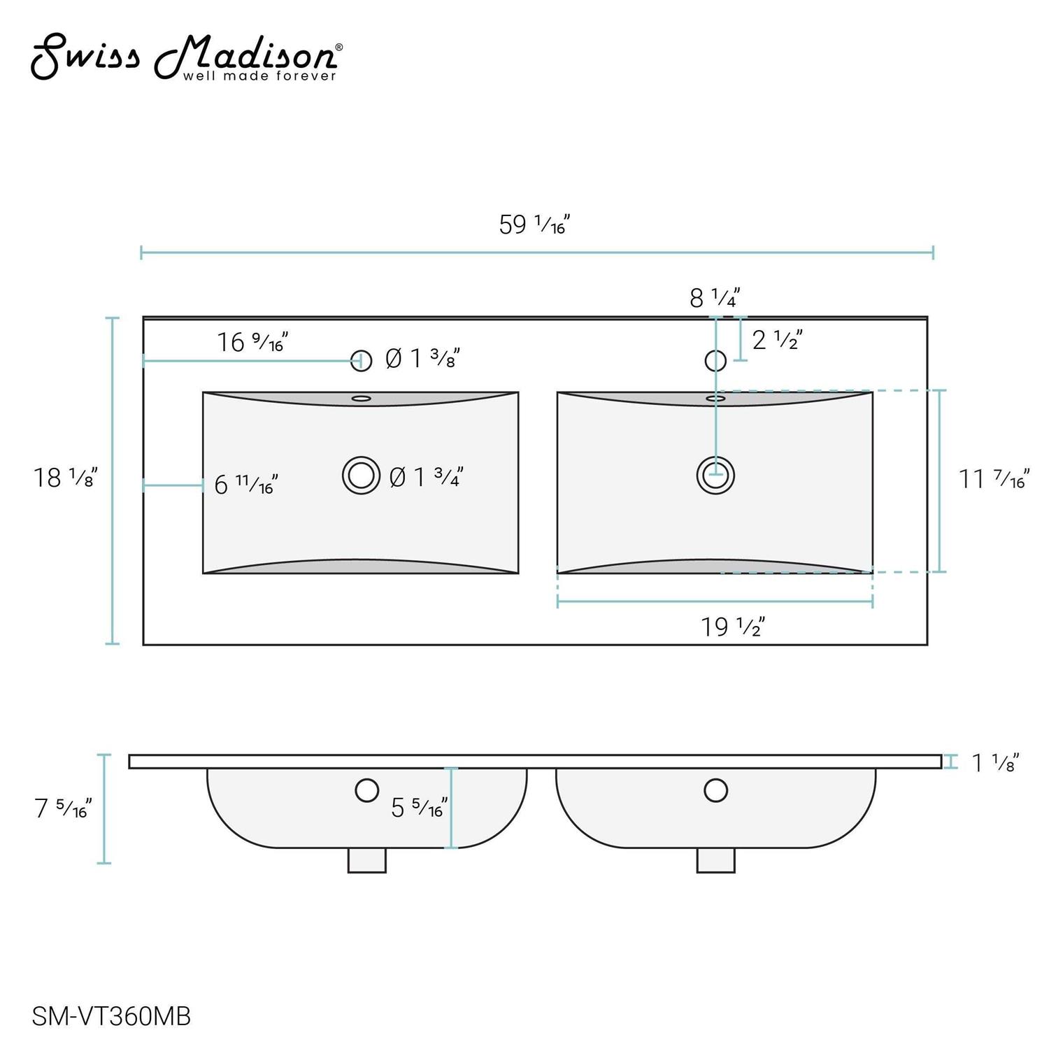 Be the first to review “Swiss Madison 60 inch Vanity Top Bathroom Sink in Matte Black”