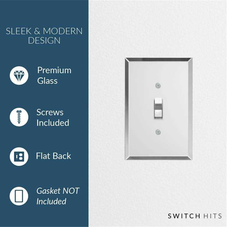 Made with Real Glass: A typical light switch cover is made of acrylic with a polished finish, but this Switch Hits rocker and toggle light switch plate cover has a solid glass mirror construction with a flat back. This construction design means our professional grade wall plates will stand the test of time while making your home or office shine. Sleek and Modern Design: The highly reflective surface provides a classic design for any kitchen, bathroom, or office renovation. The faceplate covers offer a luxurious look and feel that help complete a room. Simple Installation: Every glass mirror plate comes with matching color coordinated screws, providing you with the perfect pair. Screws help your rocker, dimmer, or switches stay in place better than the screwless options. Note: this is real glass, do not overtighten screws or glass may crack. Our light switch plates allow for a lovely decor, no matter how unique your needs. Quality You Can Trust: Switch Hits creates the highest quality blank wall plate covers using the best processes. Trust us to bring a distinct decor during your next home improvement renovation.