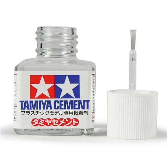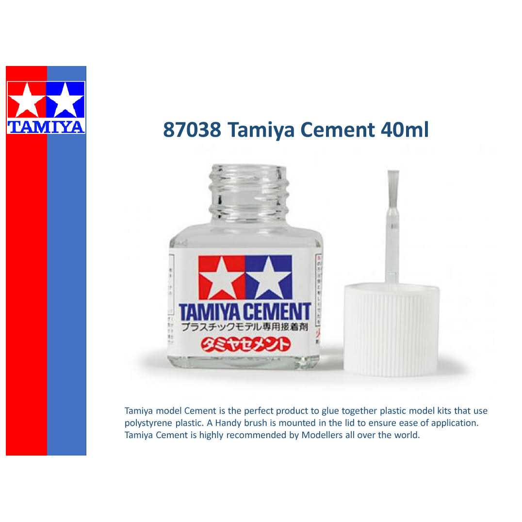 Tamiya Cement, Glues, and Adhesives are available at emodels and are popular with modellers because they stick stronger. Stronger glue means a longer model life. Tamiya Liquid Cement comes in 40ml bottles, are among the best types of cement in the business. Apply a small amount of cement to one of the glueing surfaces and press the parts together. Leave for a while until the cement has completely hardened. Tamiya Cement is a general purpose cement that can be used to glue various materials together. Cement is also recommended for assembling plastic kits and can be used to fill small gaps between parts. For more accurate work, use Tamiya Extra Thin Cement. In addition, Tamiya produces a range of glue products including cement, instant glue, and putty.