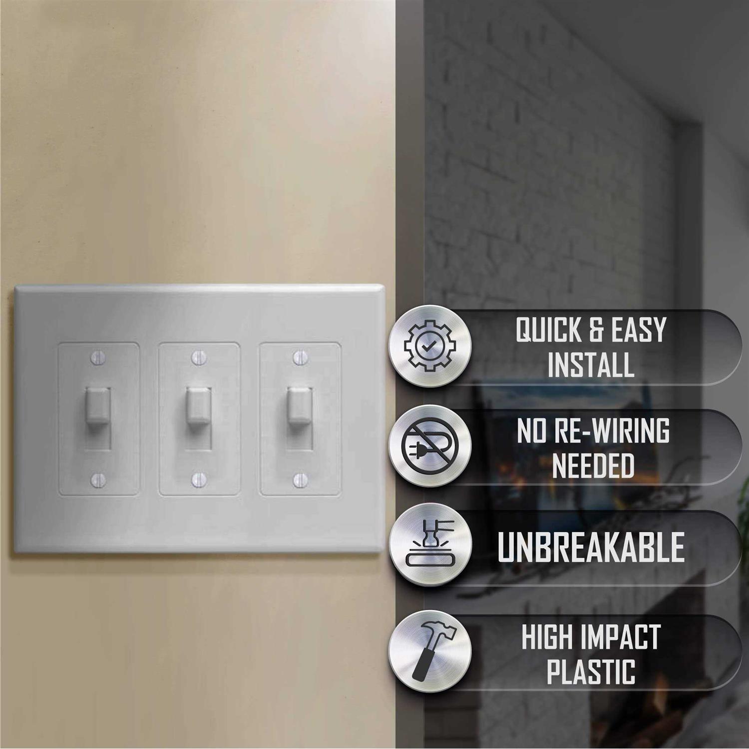 - Completely covers old outdated outlets and switches