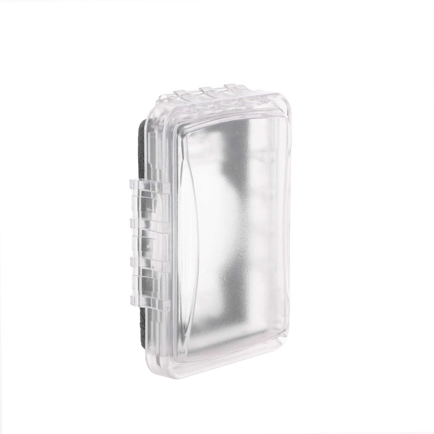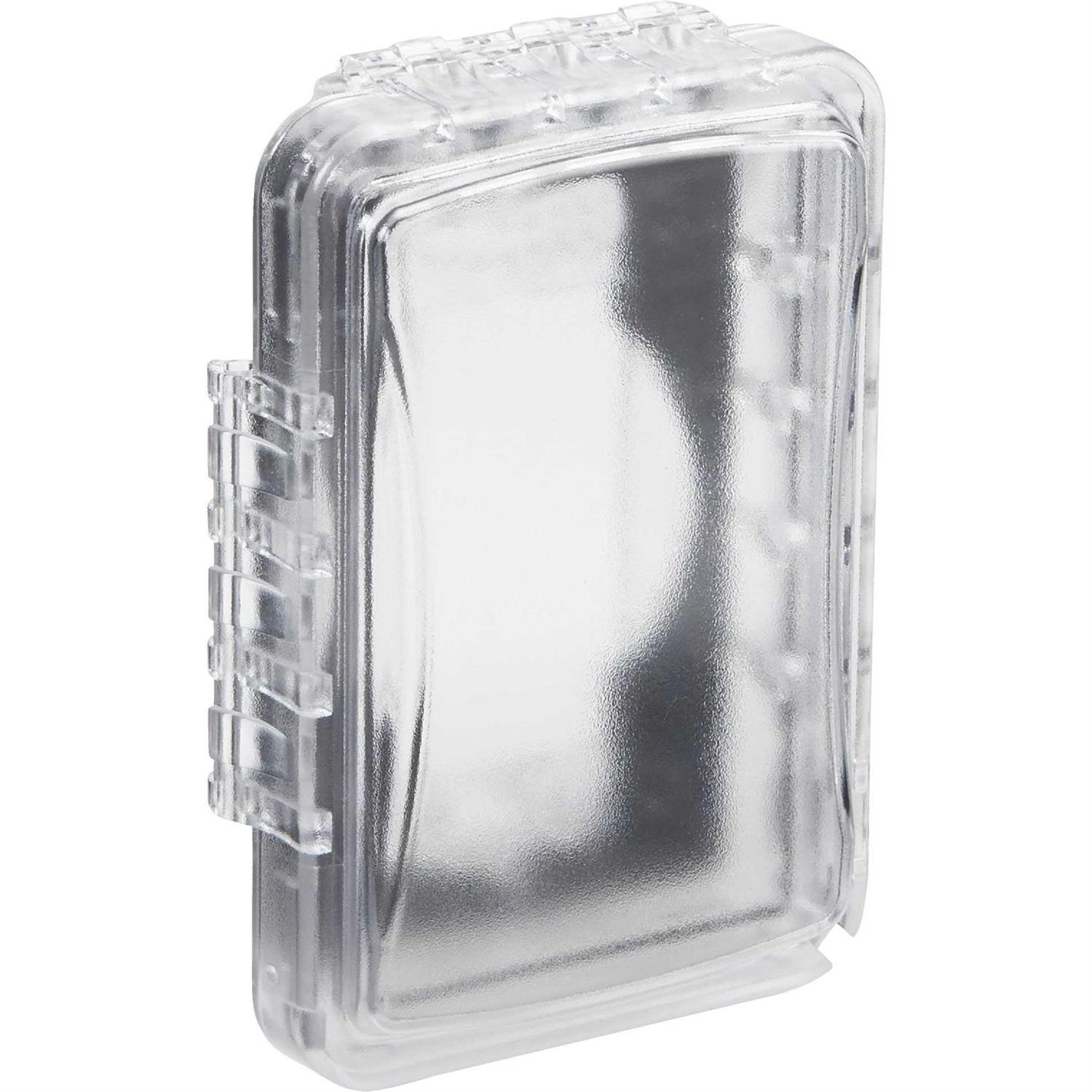 MM110C Weatherproof Single Outlet Outdoor Receptacle Cover, 5/8 Inches Deep, Clear Featureo Multi configuration weatherproof cover fits 16 different applicationso Mounts horizontal or vertical for Patented quick fit featureo Fully paintable for custom look, blending to match your home or building.o Durable UV protected polycarbonate material is resistant to breakage and corrosiono Includes attached gasket and mounting hardware DescriptionThe TayMac weatherproof flat plastic cover is a one-gang (16 in 1 ) horizontal/vertical clear cover MM110C that safely covers any electrical outlet in seconds. The patented Multi-Mac features our Universal Fit system which enables you to use the same product for all types of receptacles. One Multi-Mac does it all. The cover fits horizontally and vertically. It is made up of a durable high-impact polycarbonate construction that resists breakage and corrosion. The quick fit patented key hole mount allows easy installation, along with the base configuration with it’s patented knock out technology allows for a custom fit. Simply snap out the knock-outs to fit your electrical outlet. One Multi-Mac gives you many configurations both vertically and horizontally. Included with this cover is an attached gasket and mounting hardware. The Multi-Mac meets or exceeds OSHA and NEC (article 406.8[b][1] wet location requirements with the cord plugged into the receptacle.