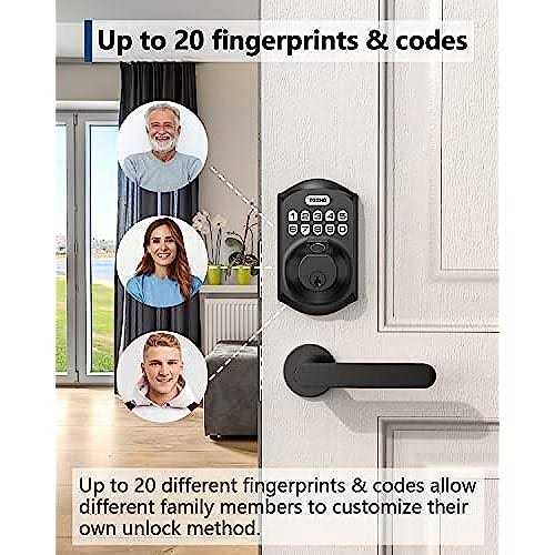 Easy Installation: Install in minutes with just a screwdriver, suitable for both men and women. One-Time Code: Set a one-time PIN code for door opening that is automatically deleted after use, ensuring maximum security. Convenient Keyless Entry: Provide access to up to 20 family members with unique access codes & fingerprints, and create temporary codes for guests to use. Secure Fingerprint Unlock: Unlock your door in just 1 second with our biometric fingerprint identification technology that recognizes your fingerprint in only 0.3 seconds. Smart Locking Features: Set the automatic door lock to lock in 10-99 seconds, and use the one-touch auto-lock feature by pressing and holding any key on the keypad for 2 seconds. Easy Installation: Install in minutes with just a screwdriver, suitable for both men and women. One-Time Code: Set a one-time PIN code for door opening that is automatically deleted after use, ensuring maximum security.