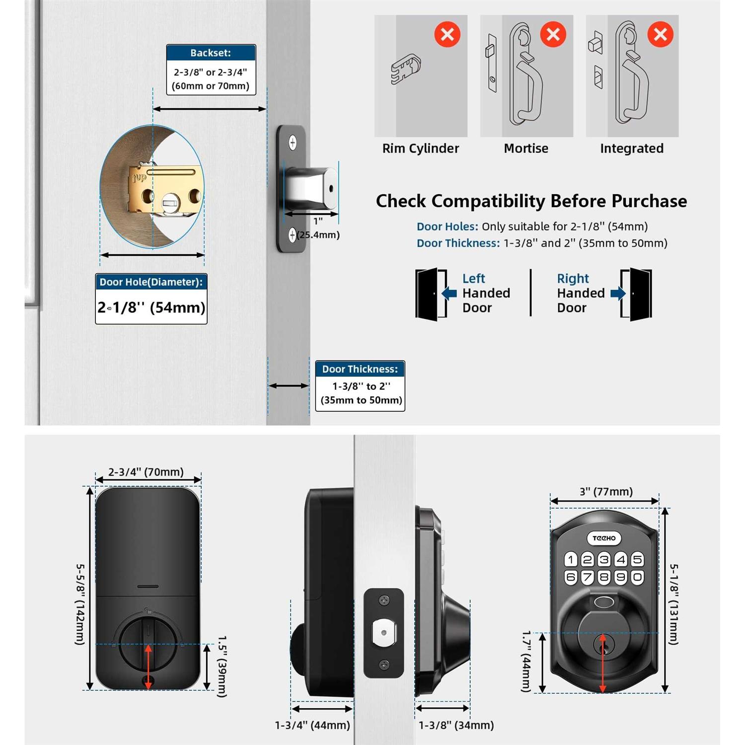 TEEHO TE002 Fingerprint Door Lock – Keyless Front Door Combination Lock with Keypad – Electronic Deadbolt Keyed Entry – Easy Ins